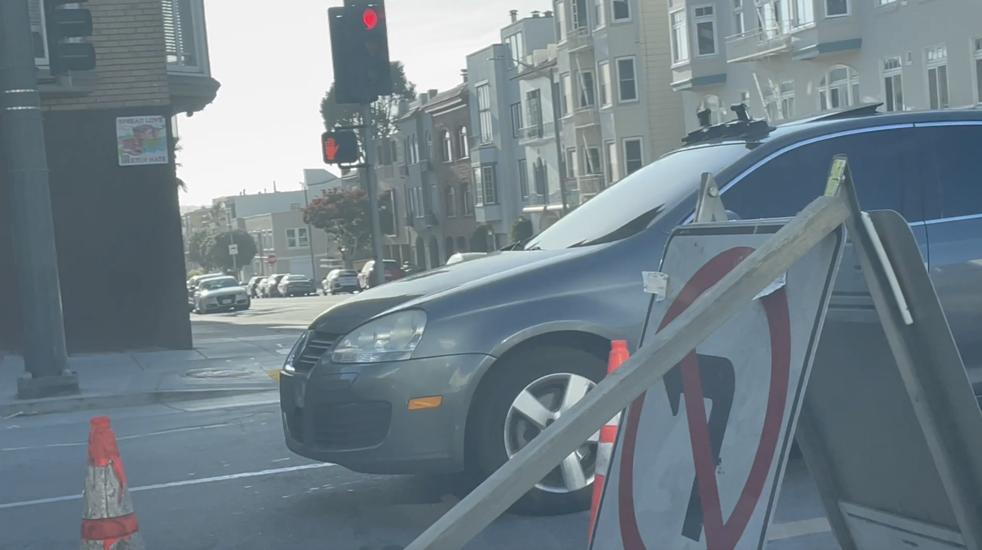 Dieser Volkswagen mit einem sehr merkwürdigem Sensoraufbau wurde am Mittwoch, dem 23. März 2022 um ca. 17:15 auf der Van Ness Ave in San Francisco gesichtet. Das Vorderkennzeichen war auch abgedeckt.