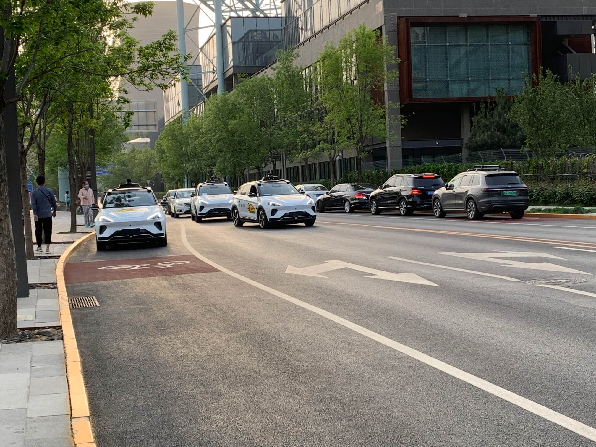 Der große Unterschied zu den amerikanischen Robotaxiflotten sind einerseits die Abhängigkeit von einer speziellen Verkehrsinfrastruktur – so sind die Testgebiete in China mit spezifischen Sensoren für die Robotaxis ausgestattet – und in den Fahrzeugen befinden sich bislang noch Sicherheitsfahrer.