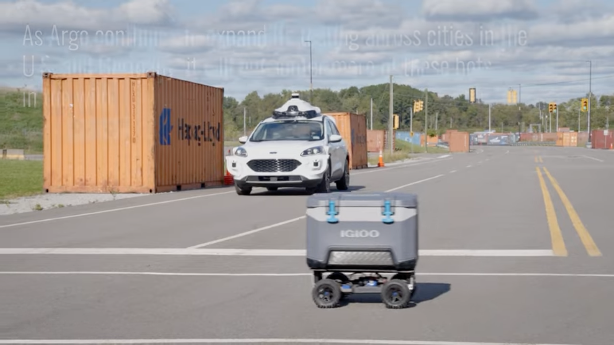 Und Robotaxis müssen auf diese vorbereitet sein und ihre kleinen Artgenossen nicht etwa umfahren. Und genau das testet Argo.ai auf seinem Testgelände. Igloo, eine Kühlbox auf vier Rädern, kreuzt die Straßen des Testgeländes vor dem Robotaxi und hilft damit diesem, besser mit ihm umzugehen.