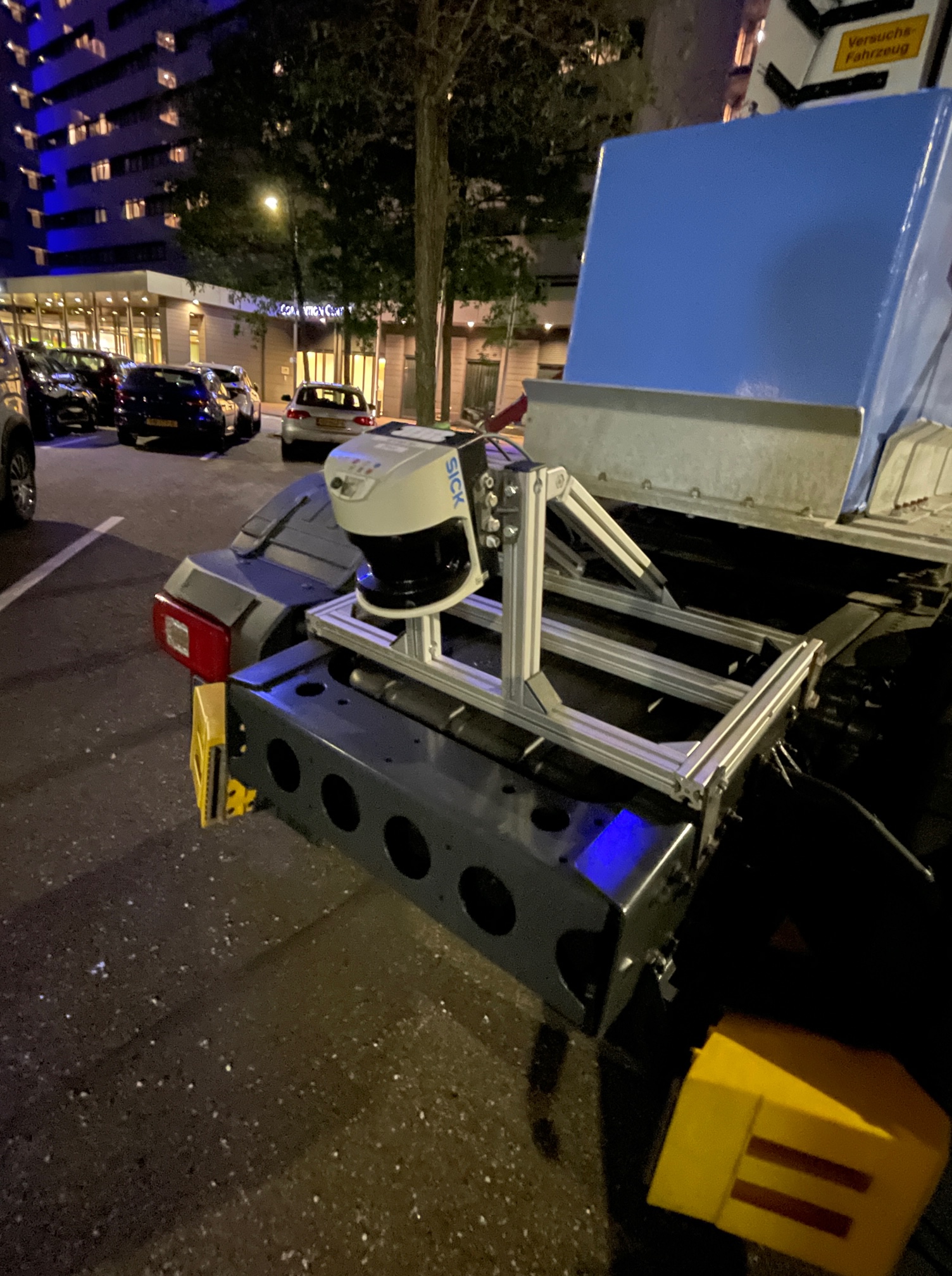 Ein autonomes Testfahrzeug eines europäischen LKWs (Zugmaschine) der Firma Iveco wurde von unserem Leser Patrick Ott heute in Amsterdam auf einem Hotelparkplatz gesichtet. Das Fahrzeug ist mit mehreren LiDARs, Kameras und Radar ausgestattet.