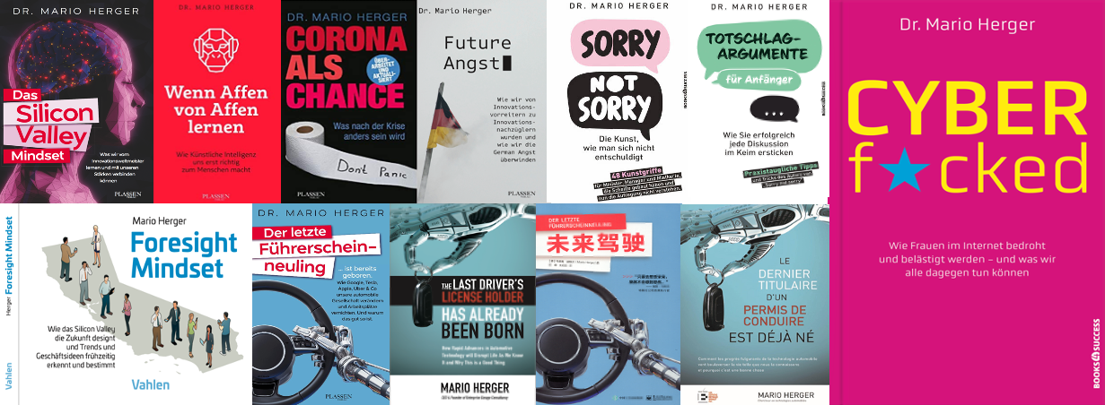 | Bücher zum Silicon Valley, der Zukunft, künstlicher Intelligenz, dem aufregenden Thema Innovation, der Automobilindustrie oder wie man sich bloß nicht entschuldigt, mit anderen Worten alles gute Bücher von mir. Und die will ich Dir ans Herzen legen. |