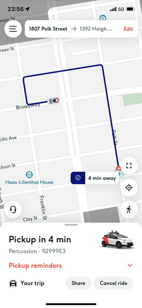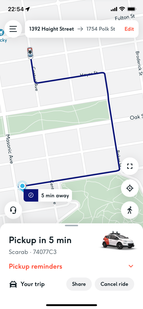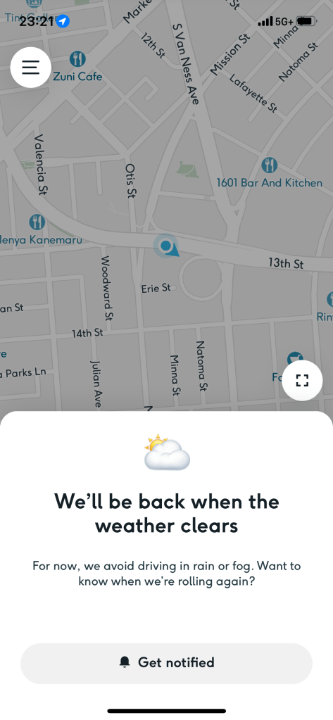 Die Fahrten mit dem Cruise sind nicht kostenlos, nur die erste Nacht, sobald man die App erhalten hat, ist es. Der Fuhrlohn orientieren sich dabei an den andere Ridehailingdienste wie Uber und Lyft. Tatsächlich hatte ich eine Nacht einen direkten Vergleich, weil nach der ersten Fahrt von der Polk Street zur Fillmore Street in San Francisco ganz leichter Regen einsetzte. Es waren einzelne Tropfen für 1-2 Minuten, doch das genügte, dass Cruise alle Fahrzeuge zurückrief und den Dienst einstellte. Das hat weniger mit dem Können der Fahrzeuge als der Lizenz durch die Behörden zu tun. Bei Regen dürfen Cruise aktuell nicht fahren.