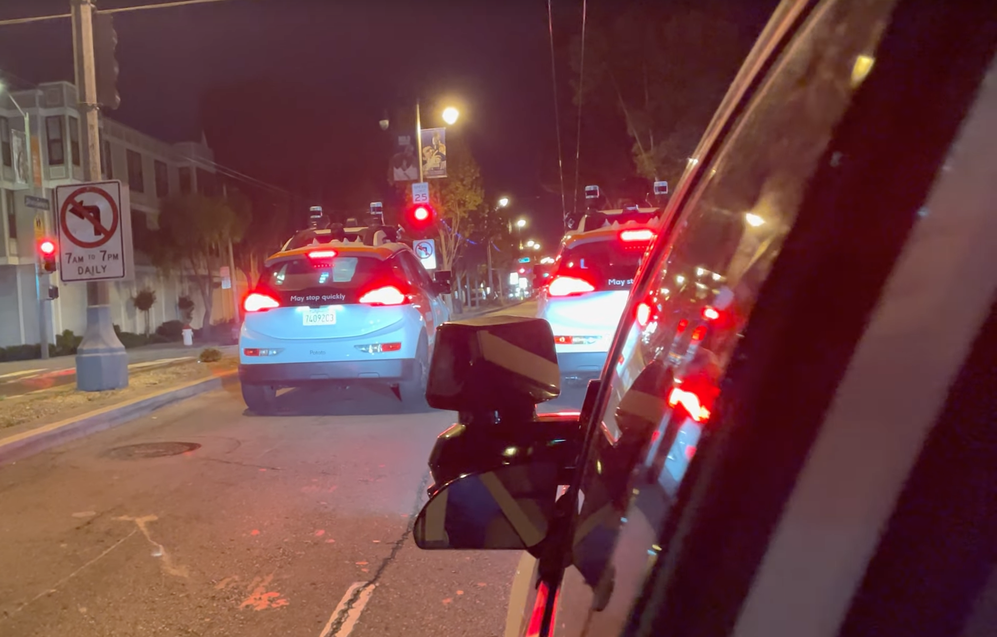 Auf den 26 Fahrten gab es kaum eine, bei denen wir nicht andere, zumeist leere Cruise begegneten. Auch autonome Fahrzeuge anderer Hersteller wie Waymo konnten wir immer wieder sehen.
