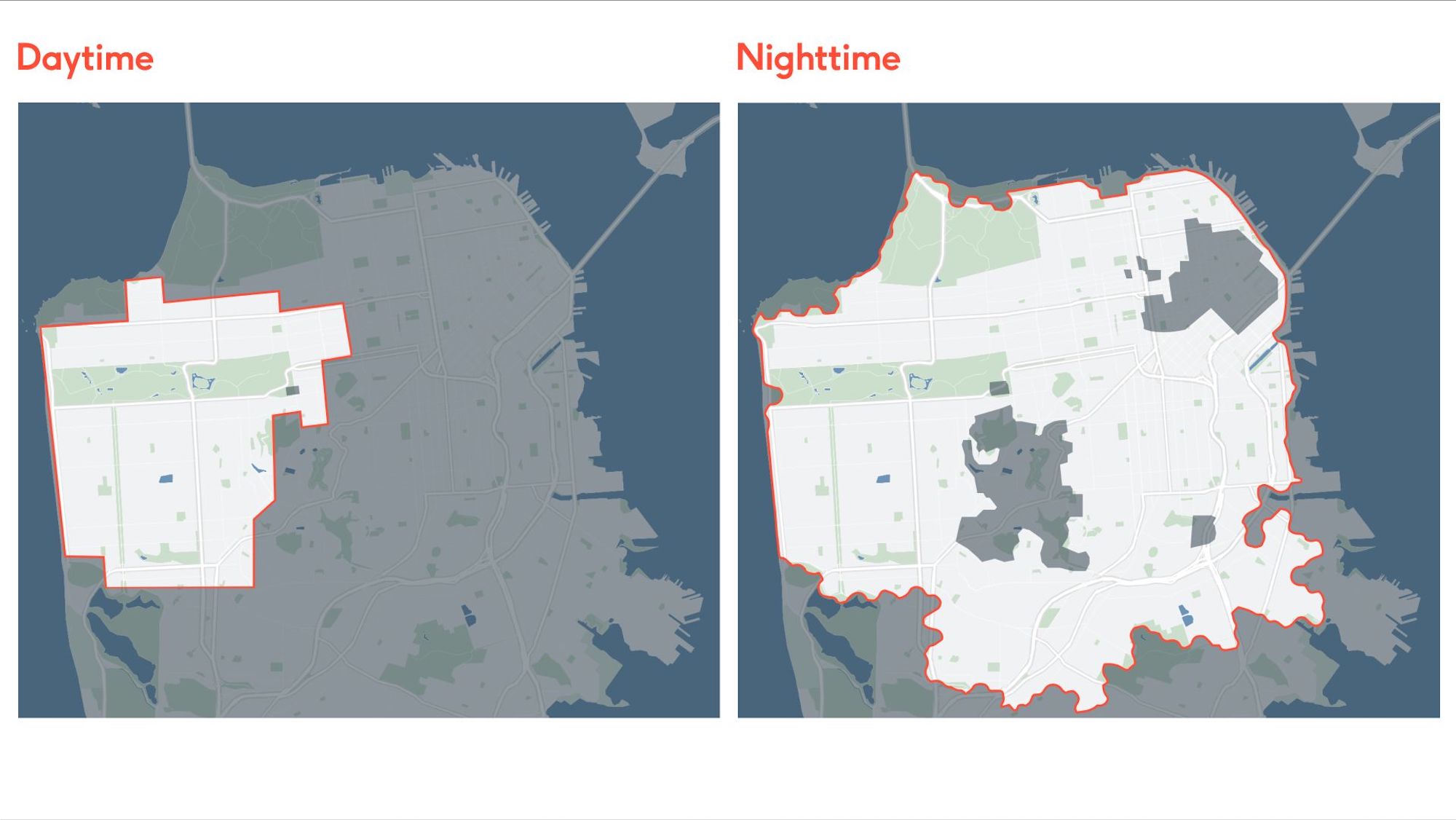Im Gegensatz zum Gebiet das in der Nacht bedient wird, ist für den Tag der eher ruhigere Westteil von San Francisco abgedeckt. Und: das Tagesangebot ist momentan auf Cruise-Mitarbeiter beschränkt. Laut Cruise-CEO Kyle Vogt soll das Tagesangebot aber auch „bald“ für die Öffentlichkeit verfügbar gemacht werden.