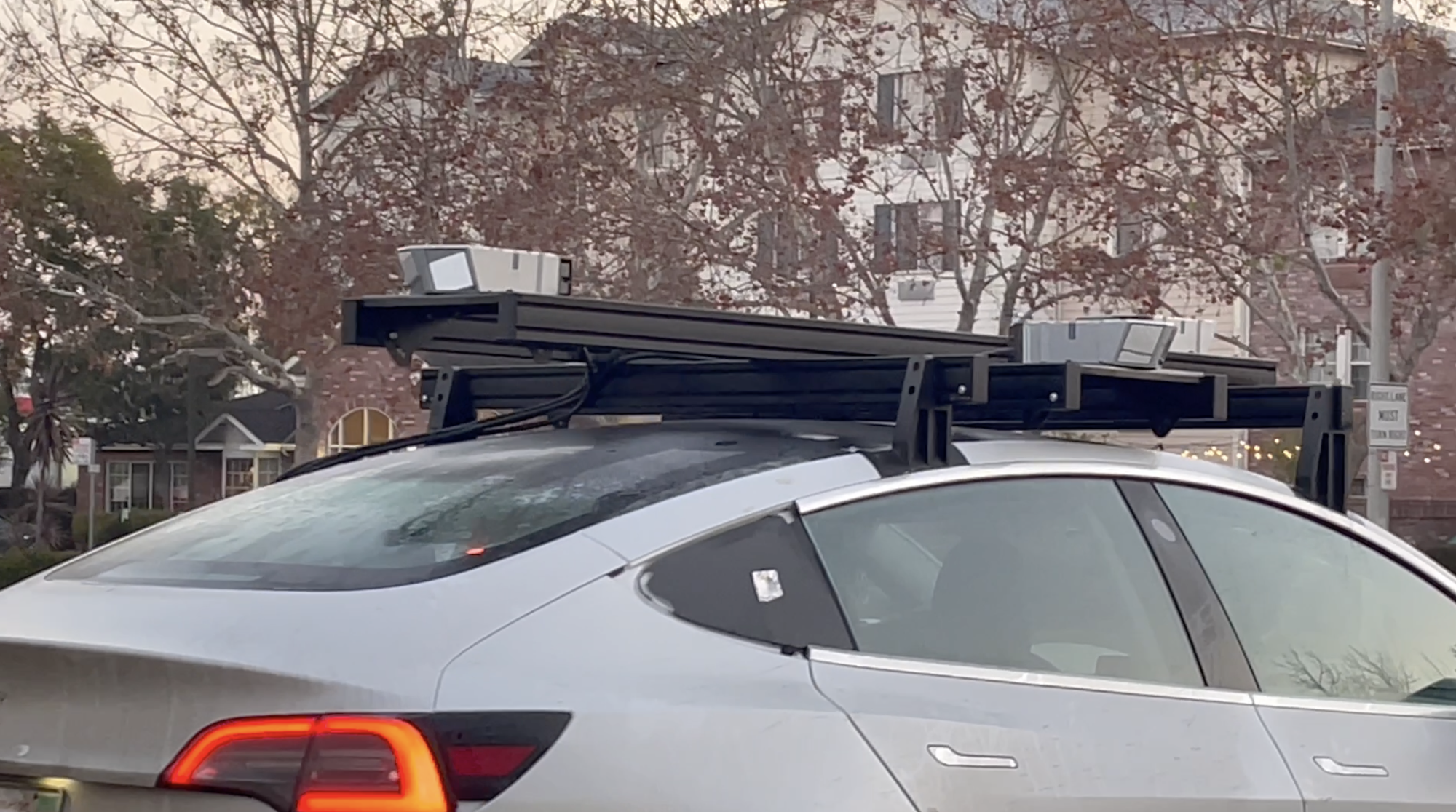 Dieses weiße Model 3 mit Lidar-Aufbau wurde am 18. Dezember 2022 gegen 7:15 Uhr an der Supercharger-Station in der Bernardo Ave in Sunnyvale gesichtet. Ähnliche Fahrzeuge wurden bereits in der Vergangenheit gesichtet und es wird angenommen, dass sie für Ground-Truth-Tests verwendet werden, möglicherweise für neue Sensoren wie neue Kameras.