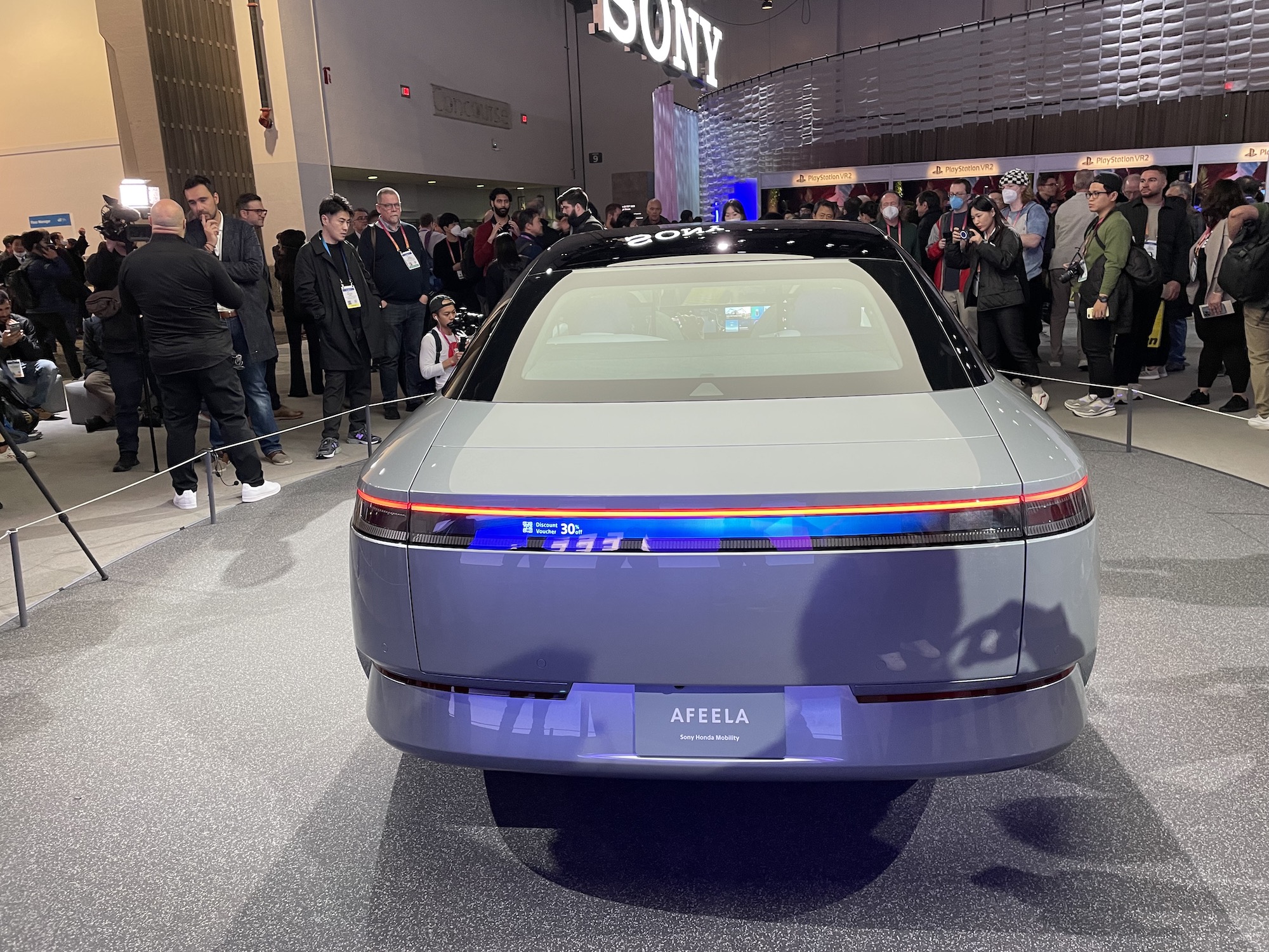 Nachdem Sony auf der CES 2020 mit einem eigenen Elektroautokonzept überrascht hatte, legt der Unterhaltungsriese nun mit Honda gemeinsam nach. In der Allianz Sony Honda Mobility wurde auf der CES 2023 der Afeela präsentiert, ein Elektroauto aus Japan. Interessantes Detail waren die Leuchtanzeigen vorne und hinten am Fahrzeug, auf denen zur Demonstration verschiedene Darstellungen präsentiert wurden: Basketballspielstände, Filmwerbung, Wetterbericht, Reifendruck, Hinweise für Fußgänger und ähnliches. Man kann das sehr gut im folgenden Video erkennen: