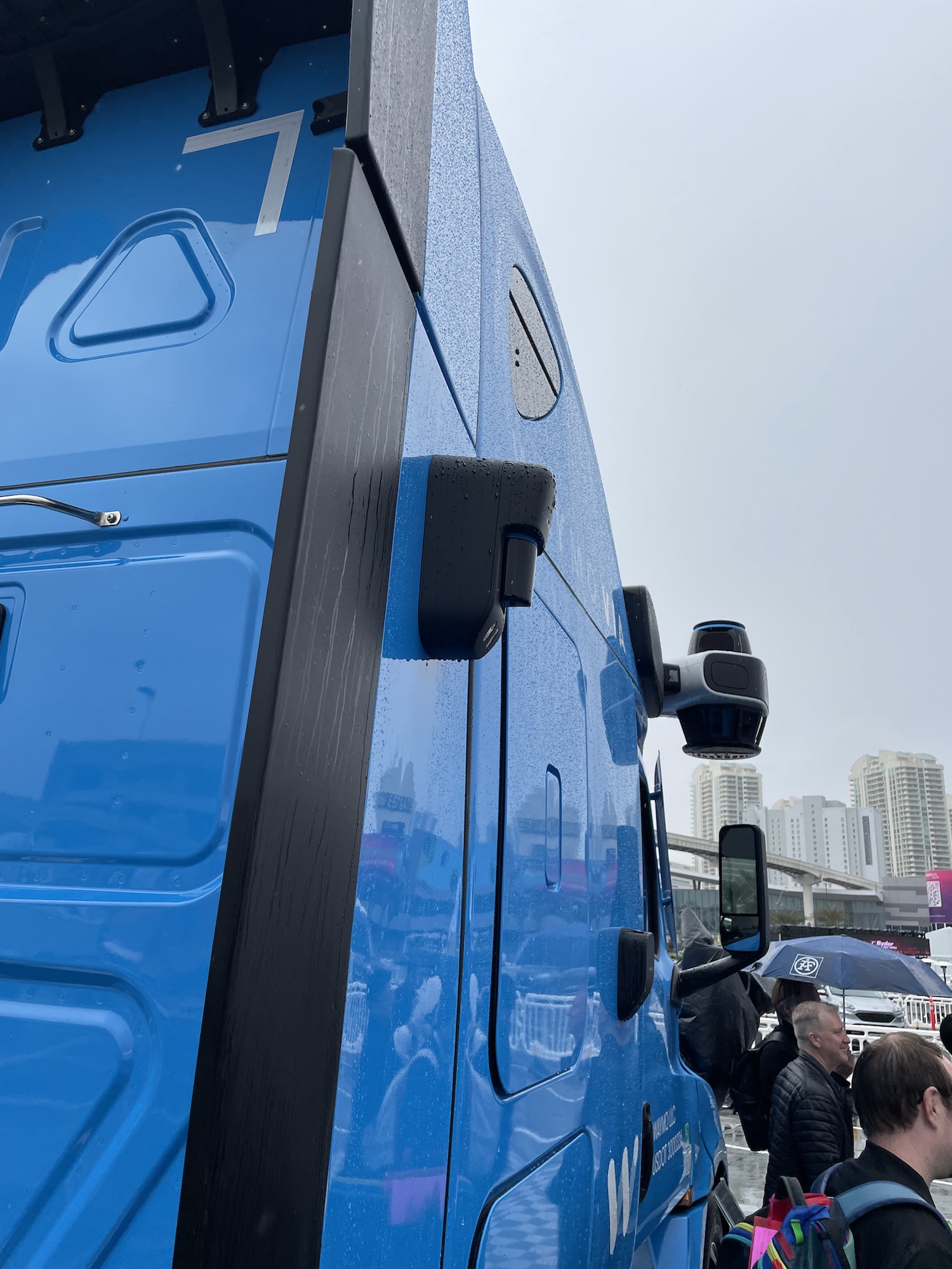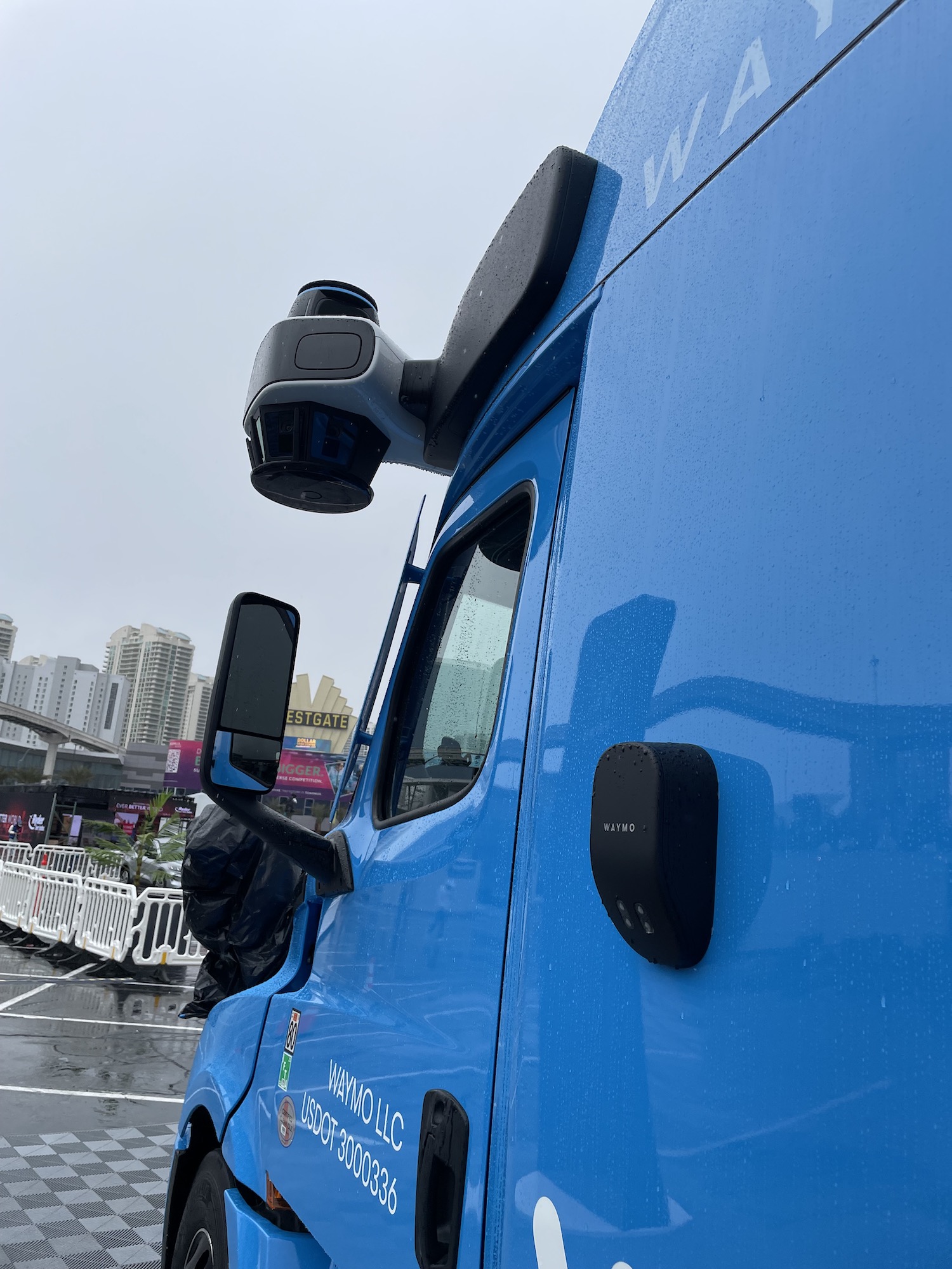 Waymo hatten neben dem neuen Robotaxi, das unter der Brand Wayme One unterwegs sein wird, auch den autonomen LKW ausgestellt. So hatte ich das erste Mal Gelegenheit, diesen nicht nur beim Vorbeifahren zu sehen, sondern aus der Nähe zu betrachten. Hier sind nun ein paar Eindrücke mit den Sensoraufbauten.
