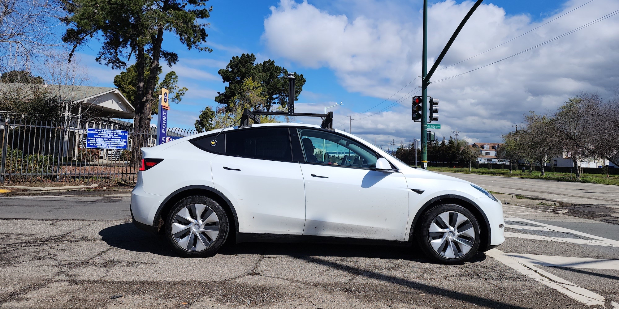 Bereits mehrmals gesichtet, nun aber zum ersten Mal von unserem Leser Dennis auf Bild gebannt: ein Tesla Model Y mit einem Ouster Lidar am Dach wurde von ihm in Alameda gesichtet.
