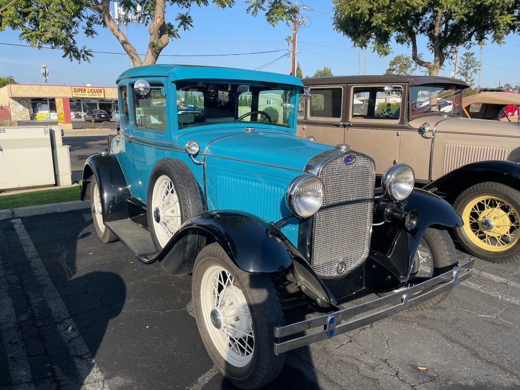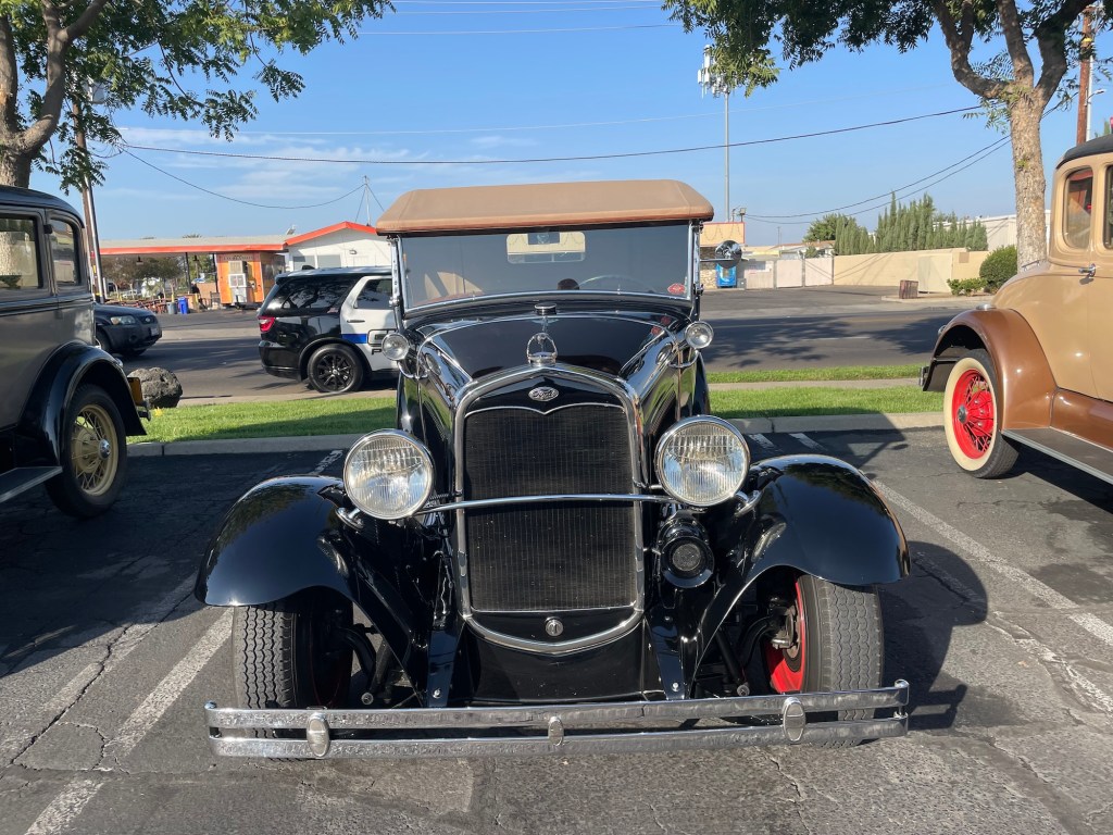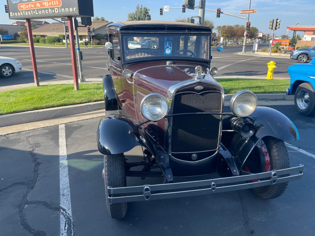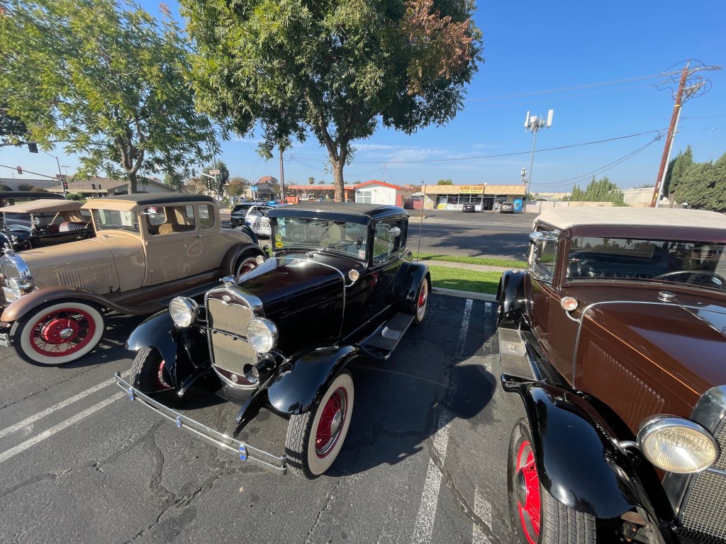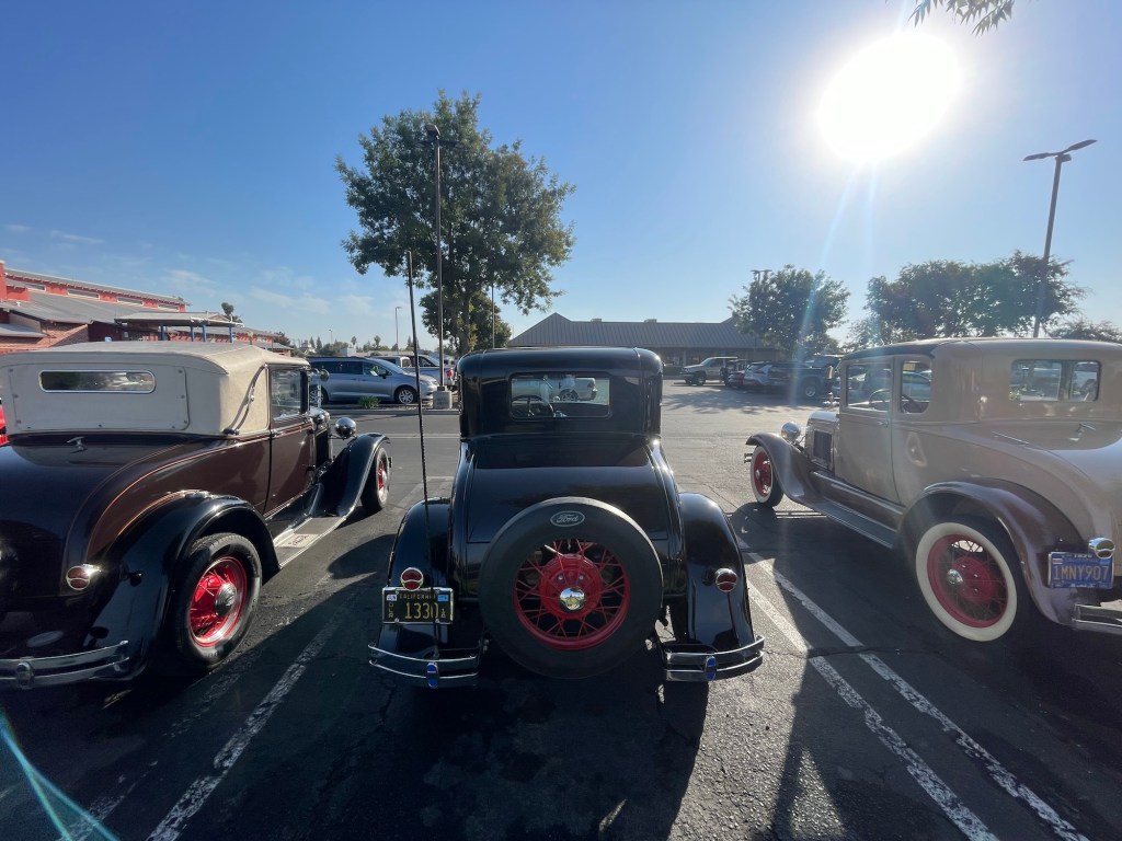 Ein Treffen von einem Dutzend Ford Model A und anderen Fahrzeugen auf einem Parkplatz an der Minnewawa und Shaw Avenue in Clovis, Kalifornien, am 21. Oktober 2023. Hier die Bilder und ein Video zum genießen.