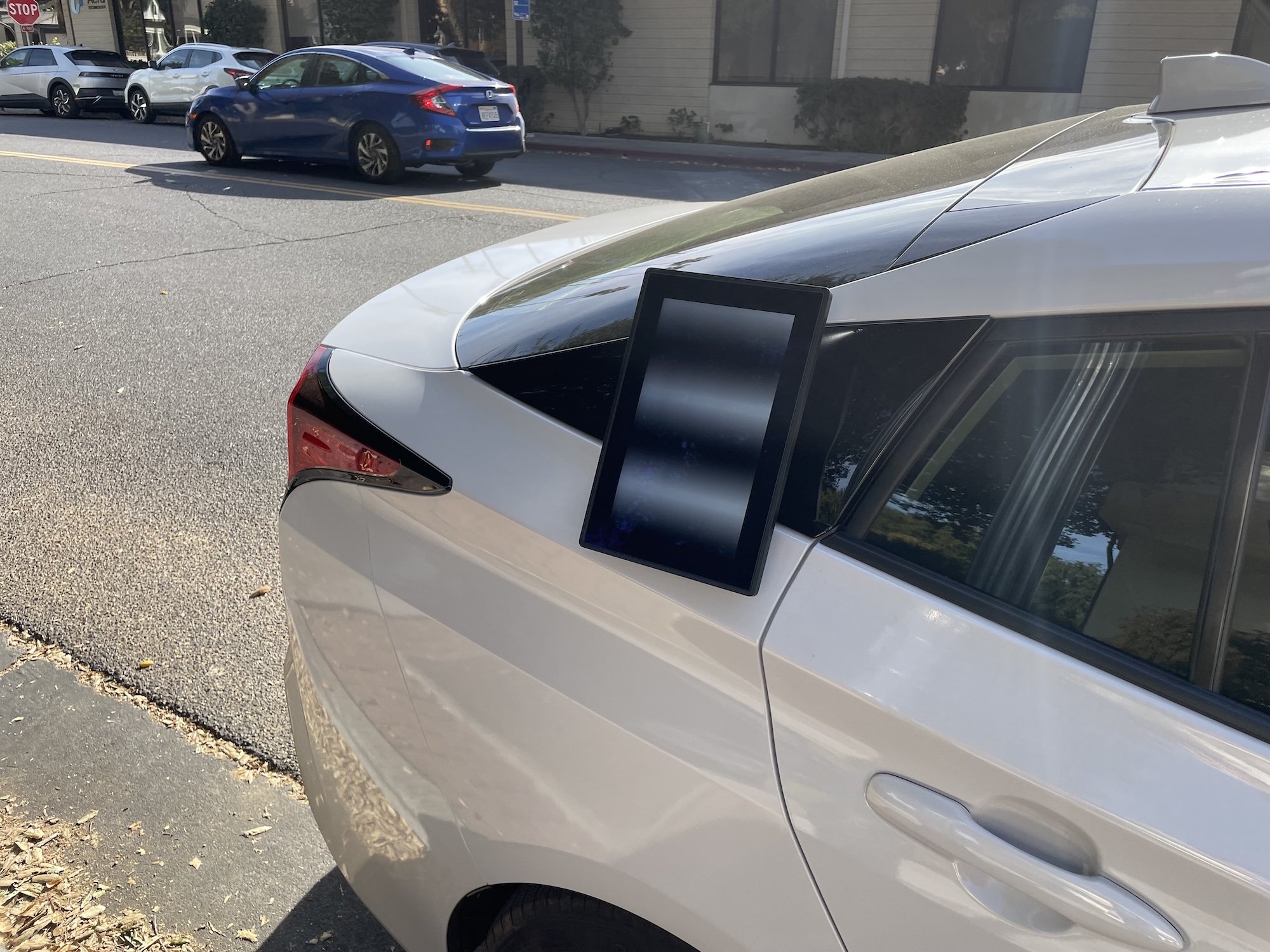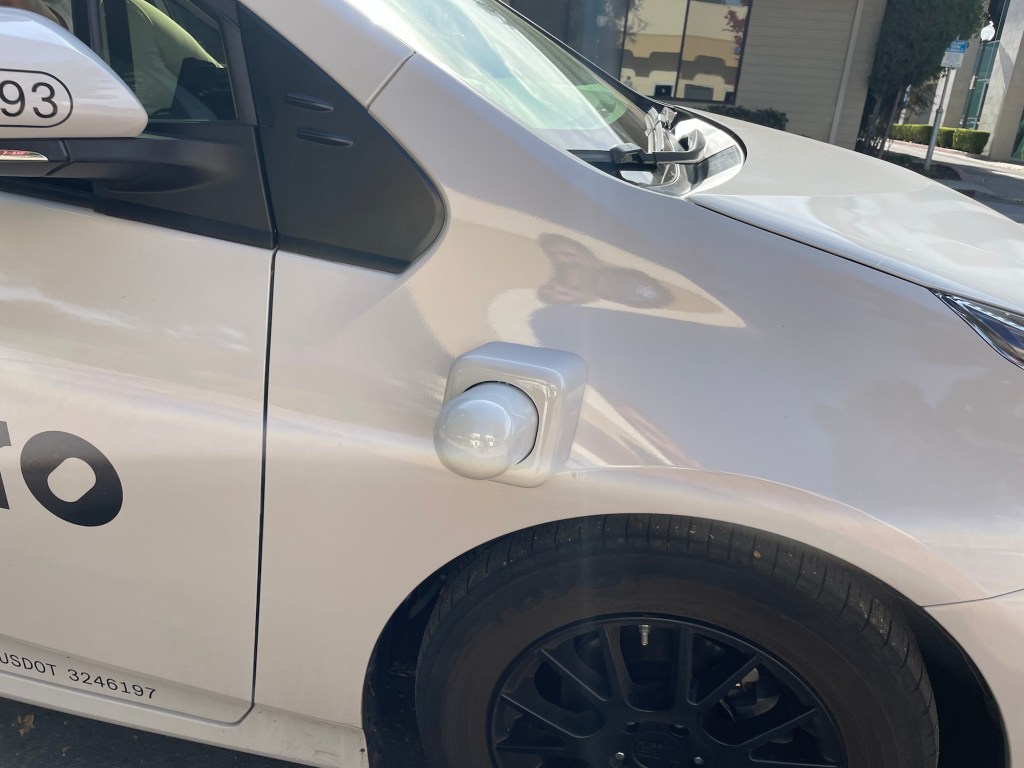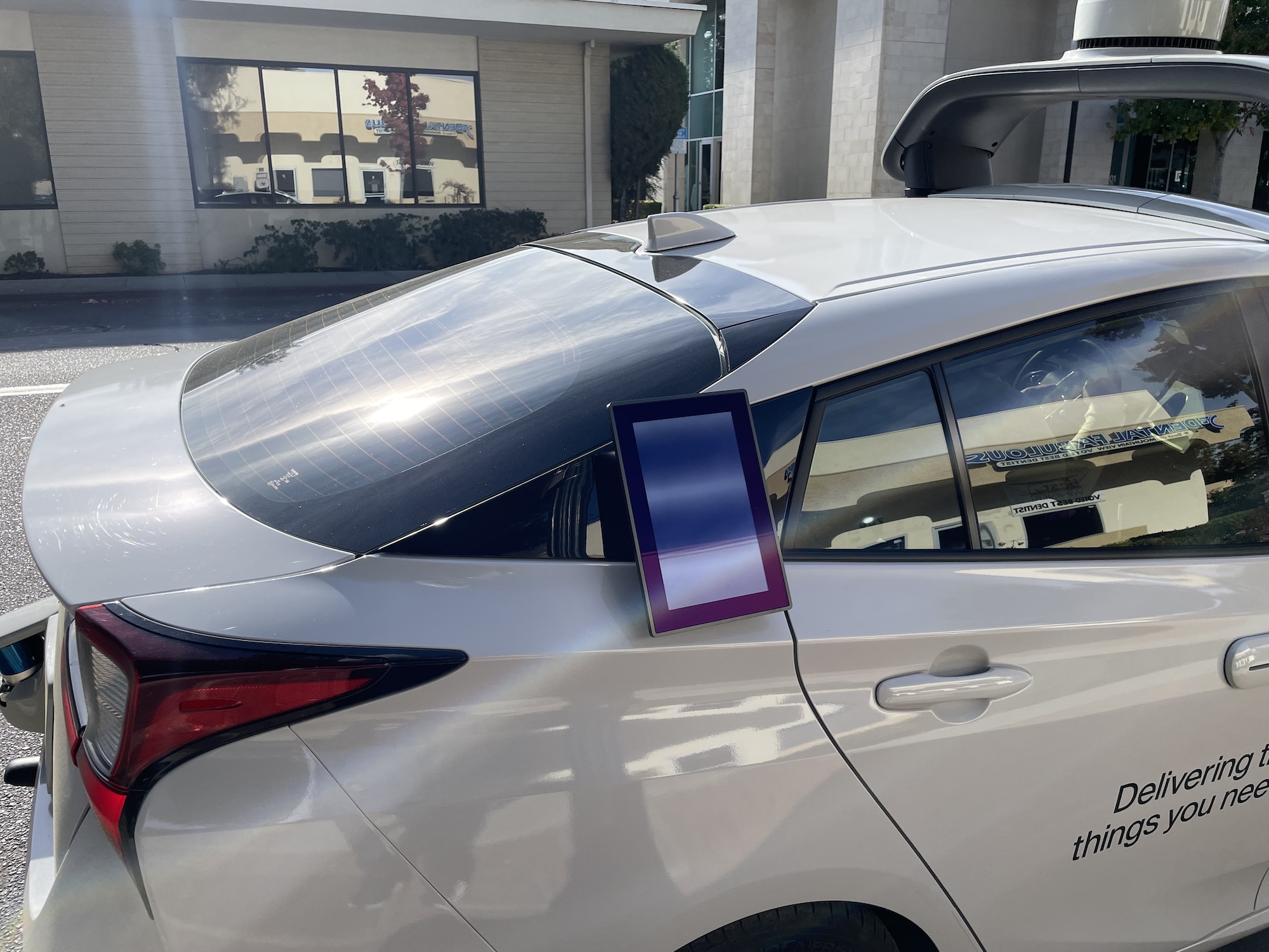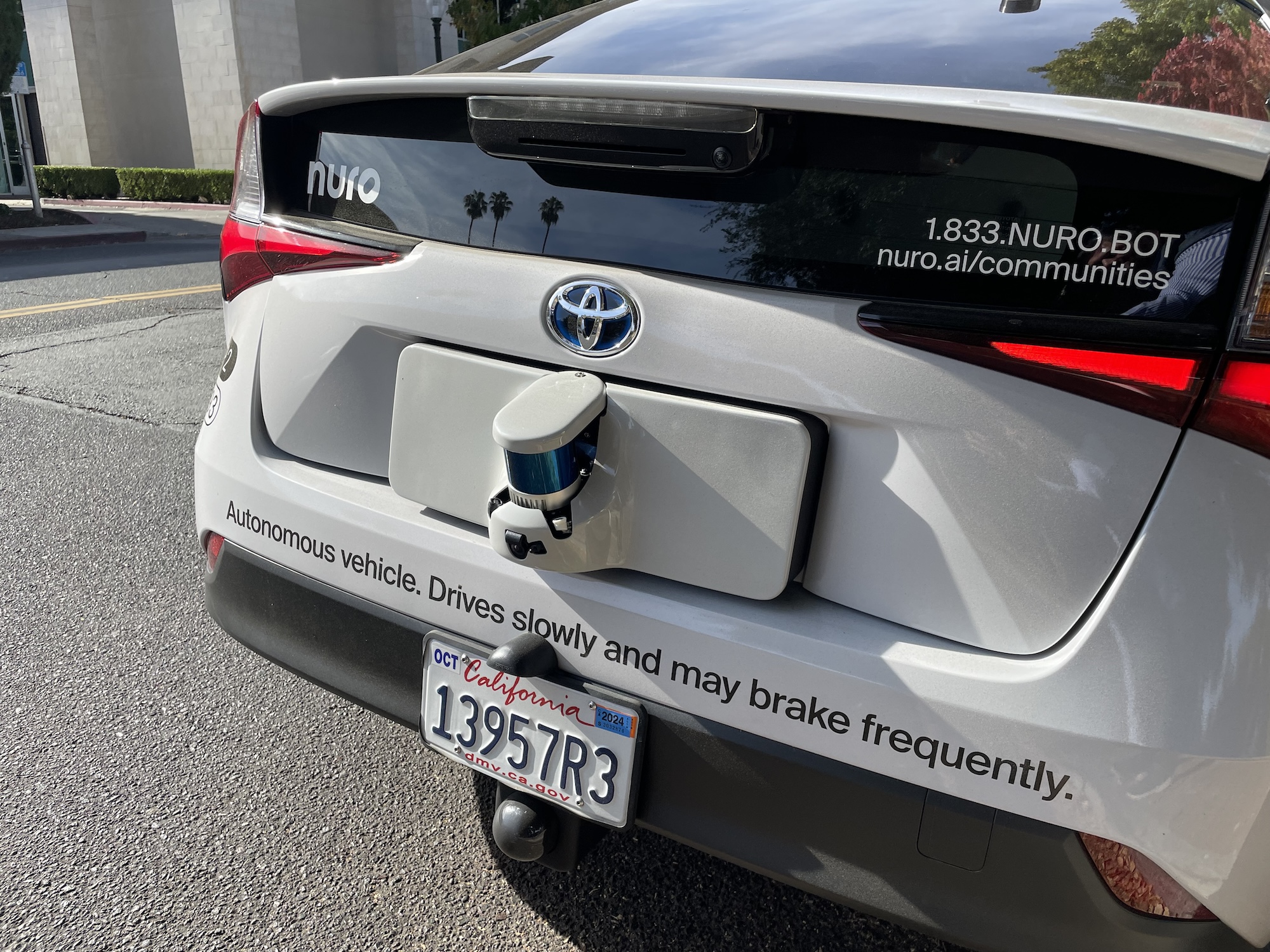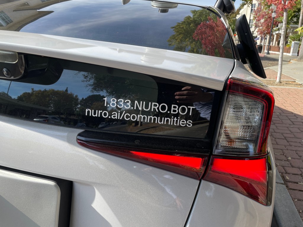 Diese Nuro-Testfahrzeuge mit einem Zugangstablet wurden am 9. November 2023 gegen Mittag in Mountain View an der Kreuzung Castro und California Street gesichtet.