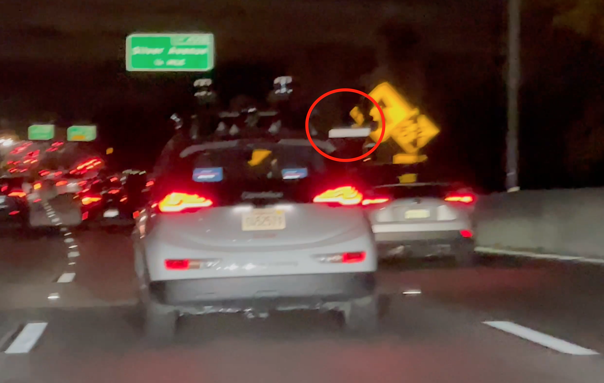 Dieses Cruise-Robotaxi (mit einem Sicherheitsfahrer) wurde am 16. November 2023 gegen 18:30 Uhr auf dem HWY 101 in San Francisco in Richtung Süden gesichtet.
