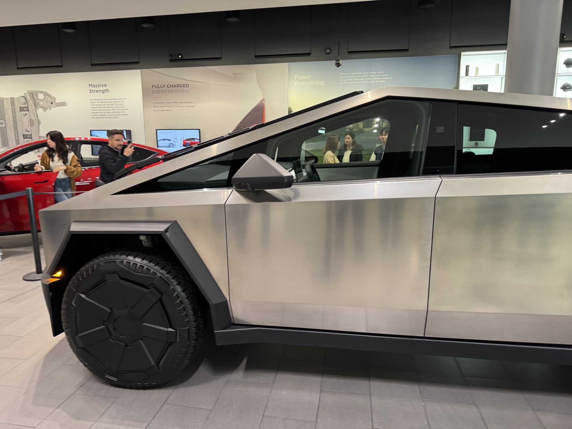 Im Tesla Store auf der Santana Row in San José hat nun ein Cybertruck den Tesla Bot Optimus als Ausstellungsstück abgelöst und das konnte ich mir natürlich nicht entgehen lassen. Hier ein paar Fotos.