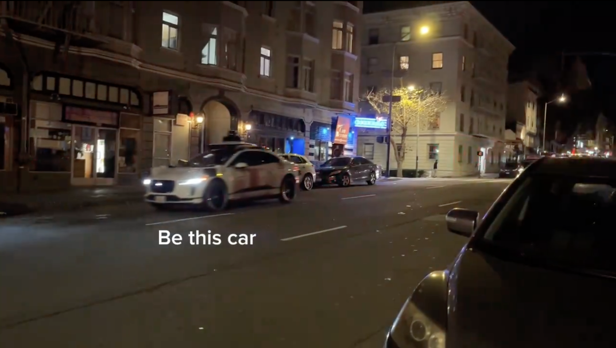 In diesem Beispiel sieht man ein Waymo, wie es vorschriftsmäßig an die rechte Seite fährt um der Ambulanz den Weg frei zu machen, was der Kommentar als vorbildhaft und nachahmenswertes Verhalten bezeichnet, während er eine unmittelbar der Ambulanz folgendes Fahrzeug mit einem menschlichen Fahrer als nicht vorbildhaft bezeichnet.