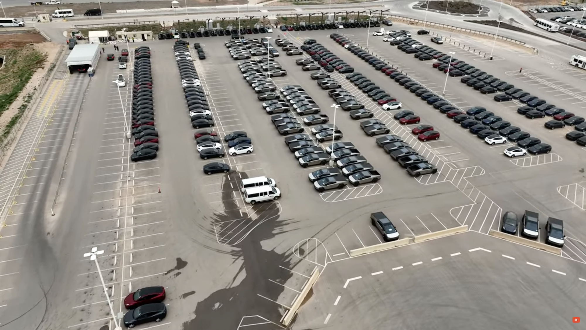 Ein neues Drohnenvideo von Brad Sloan zeigt beim Überflug über die Tesla-Fabrik in Austin in Texas um die einhundert Cybertrucks auf dem Parkplatz. Da der neue Pickup von Tesla momentan wie die warmen Semmeln aus den Regalen fliegt, nicht zuletzt da von mehr als einer Million Vorbestellungen gesprochen wird, wird angenommen, dass 100 Stück zugleich auch die tägliche Produktionsrate sein könnte.