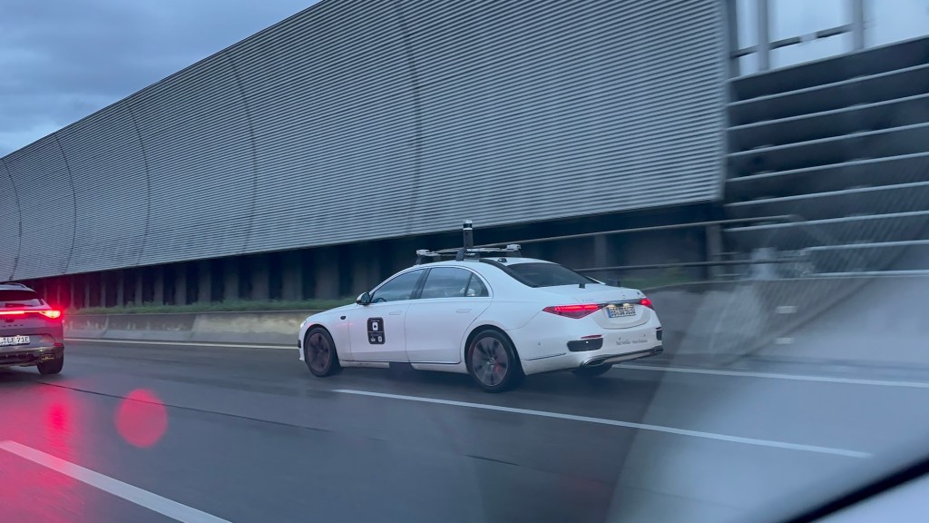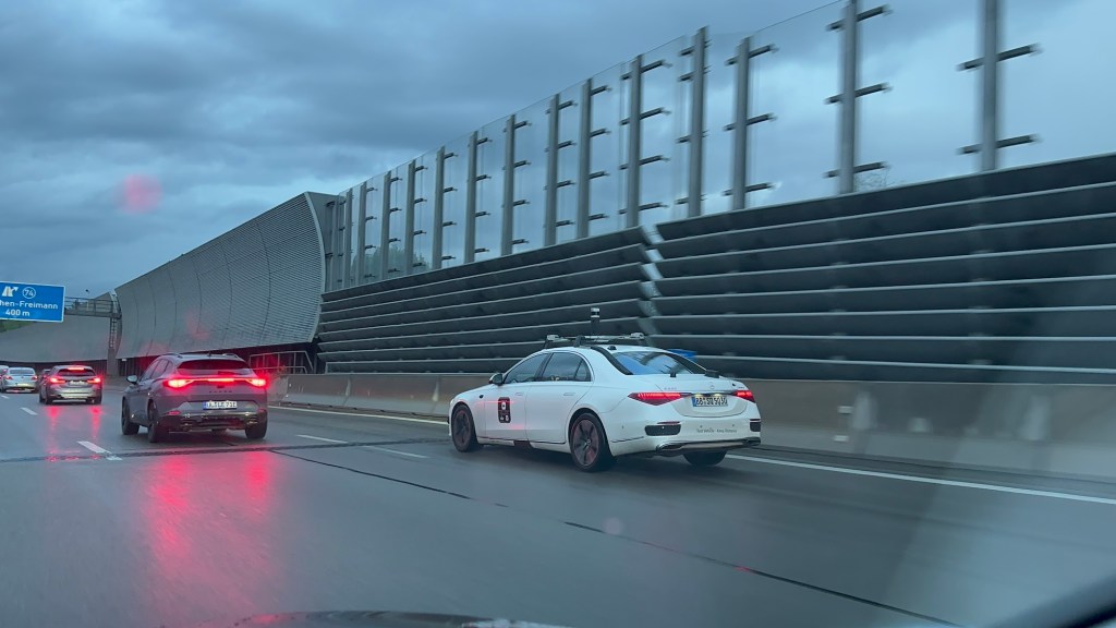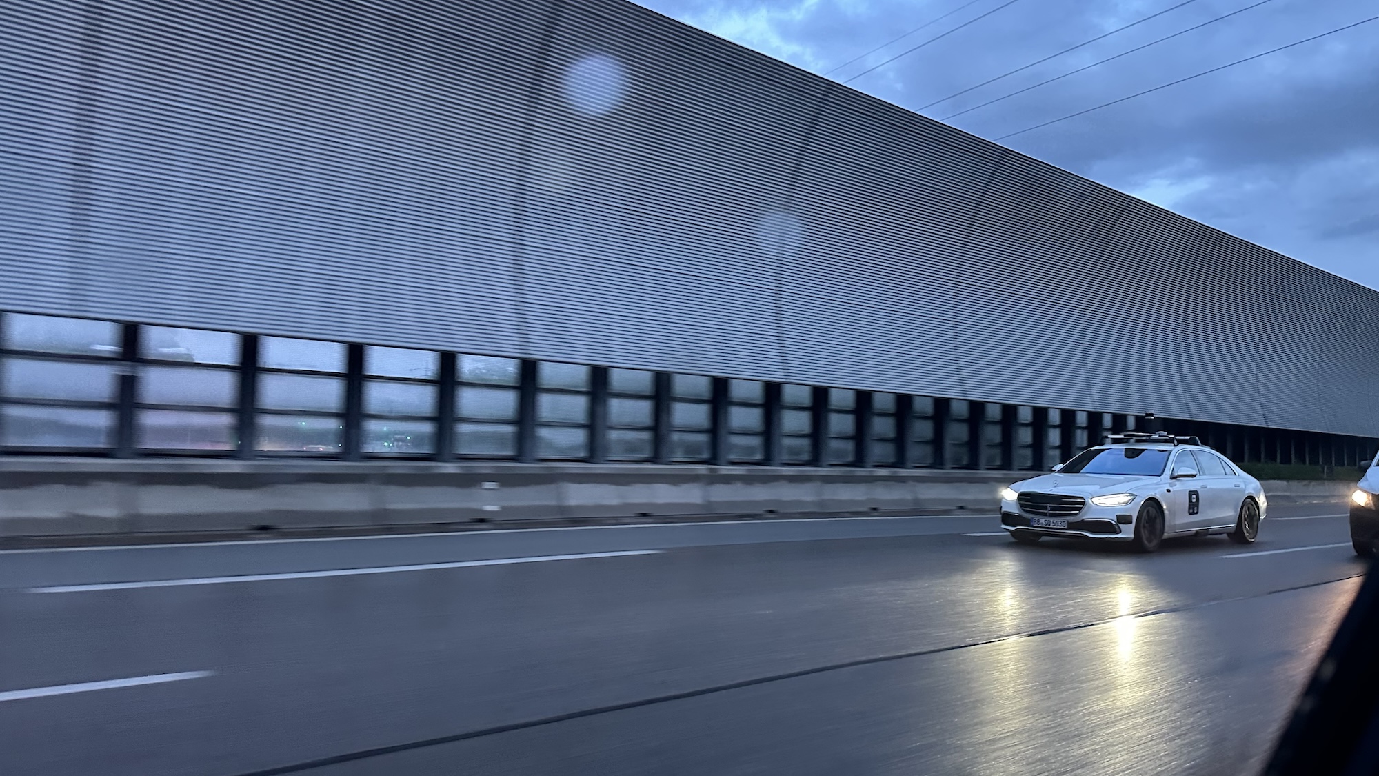 Dieser Mercedes-Benz mit Lidar-Gestell wurde von unserem Leser Max Hanselmann am 20. April 20204 auf der Autobahn 9 in München in Richtung Nürnberg, an der Ausfahrt München-Freimann, gesichtet.