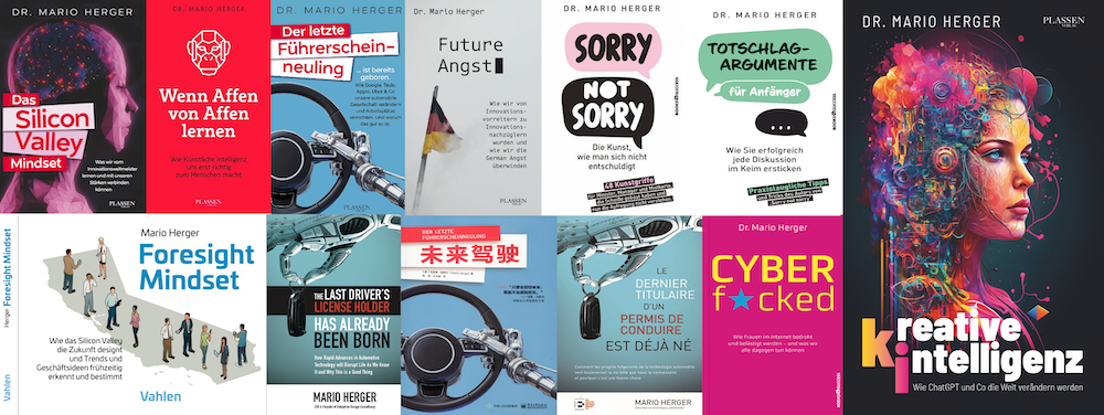 | Bücher zum Silicon Valley, der Zukunft, künstlicher Intelligenz, dem aufregenden Thema Innovation, der Automobilindustrie oder wie man sich bloß nicht entschuldigt, mit anderen Worten alles gute Bücher von mir. Und die will ich Dir ans Herzen legen. |