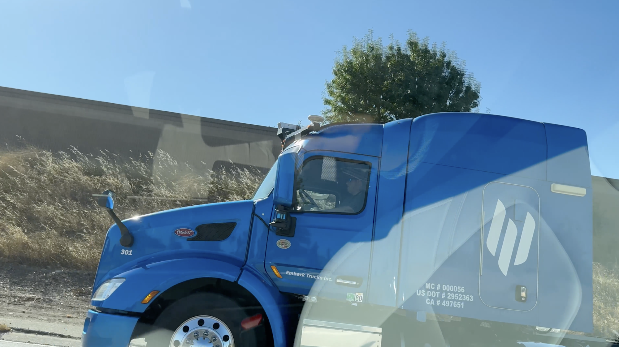 Dieser autonome Lkw von Embark, die heute zu Applied Intuiton gehören, wurde am Mittwoch, dem 2. Oktober 2024, gegen 15:18 Uhr PDT auf dem Highway 85 in Mountain View gesichtet.