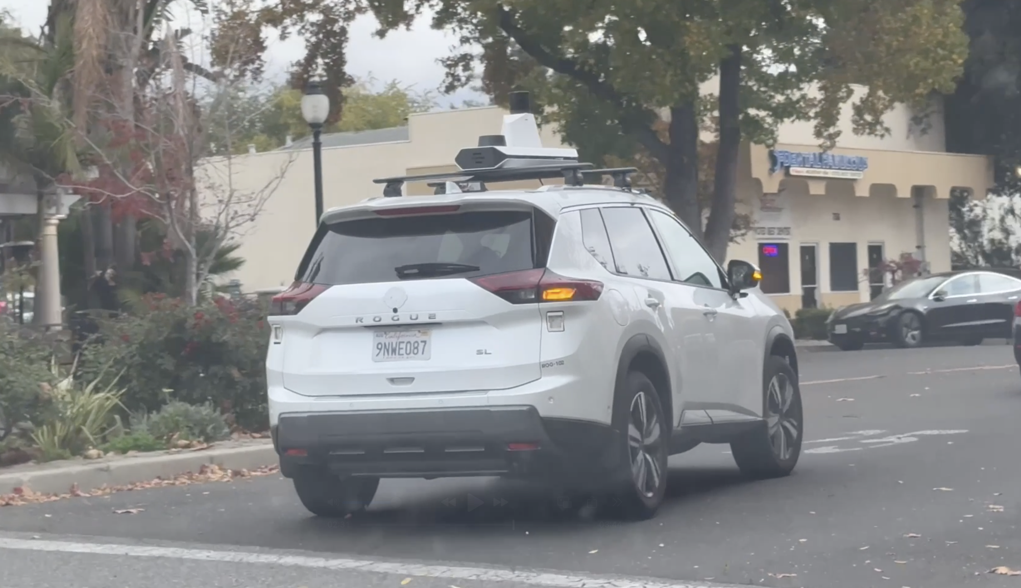 Dieses nicht identifizierte, autonome Testfahrzeug wurde am Mittwoch, dem 20. November 2024, zwischen 9:00 und 10:00 Uhr in der Innenstadt von Mountain View gesichtet.
