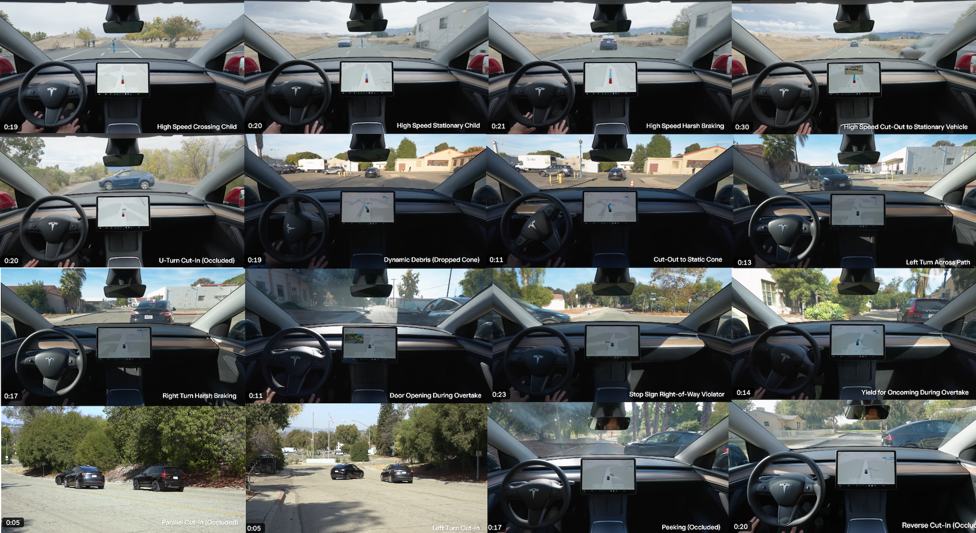 Nun hat auch Tesla zum ersten Mal Videos von 16 Testszenarien für häufige Verkehrsvorkommnisse gezeigt, auf denen die Tesla Full Self Driving (FSD) trainiert wird.