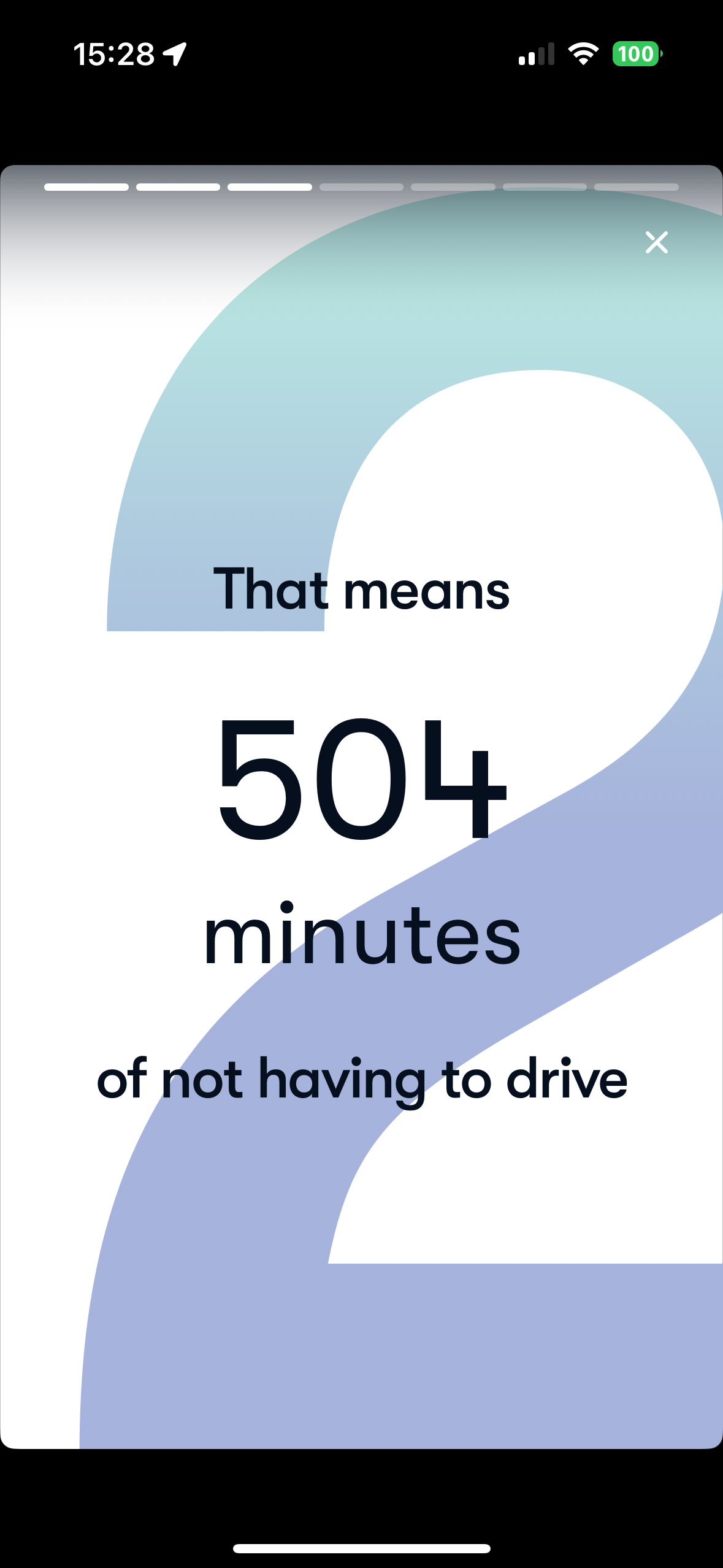 Ich selbst hatte 2024 genau 58 Fahrten, und seit 2023 über neunzig unternommen. Dabei verbrachte ich fast acht Stunden im Auto, eine Zeit die ich anders als mit selber lenken benutzen konnte. Insgesamt legte ich mit 113 Kilometern (70,5 Meilen) fast die dreifache Marathondistanz zurück und sparte dabei 25,1 Kilogramm an CO2.