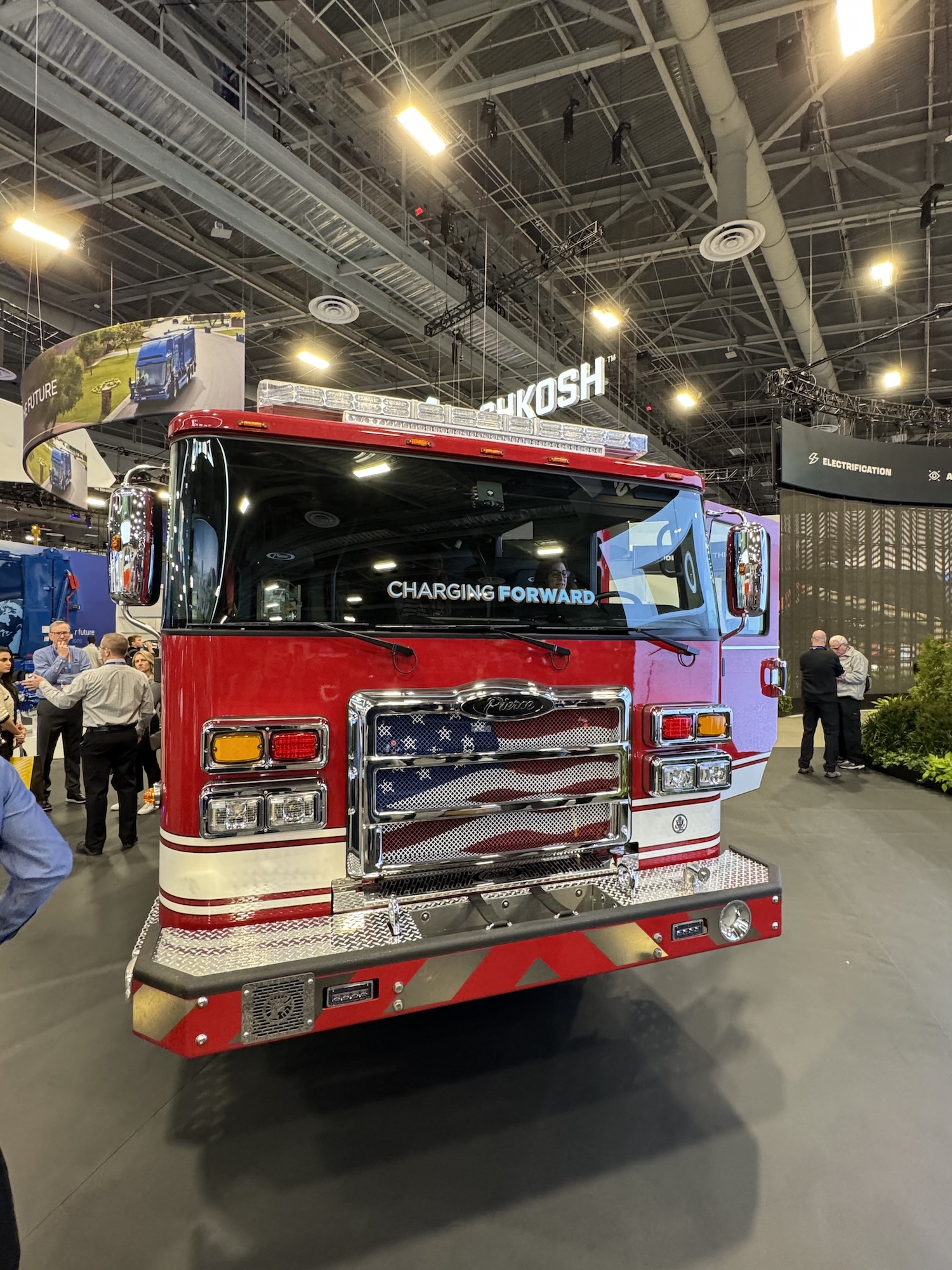 Neben diesen eher kleineren Fahrzeugen hatte Oshkosh auch zwei Schwerarbeiter im Einsatz. Das erste ist ein Feuerwehrfahrzeug im typisch amerikanischen Stil mit viel Chrom und Lack und rustikalem Aussehen.