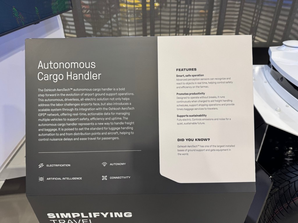 Zuerst einmal das kleinste unter den Fahrzeugen: eine Gepäckwagenzugmaschine für Flughäfen. Dieser niedliche Roboter zieht die Anhänger nicht nur elektrisch, sondern auch völlig autonom zum Flugzeug. Nur den Frachtraum beladen kann er noch nicht.