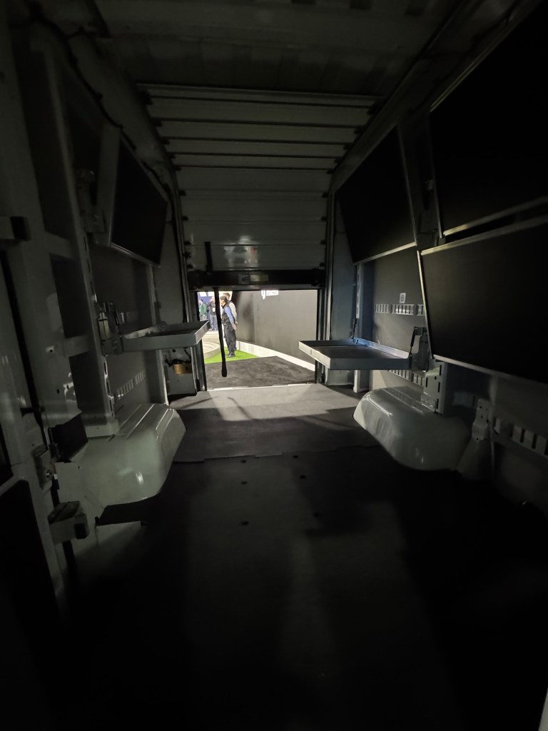 Die für die Elektrifizierung notwendigen Komponenten, wie ein Getriebe – das es üblicherweise bei Elektroauto-PKWs nicht gibt – und die Batteriepacks von Proterra waren auch ausgestellt.
