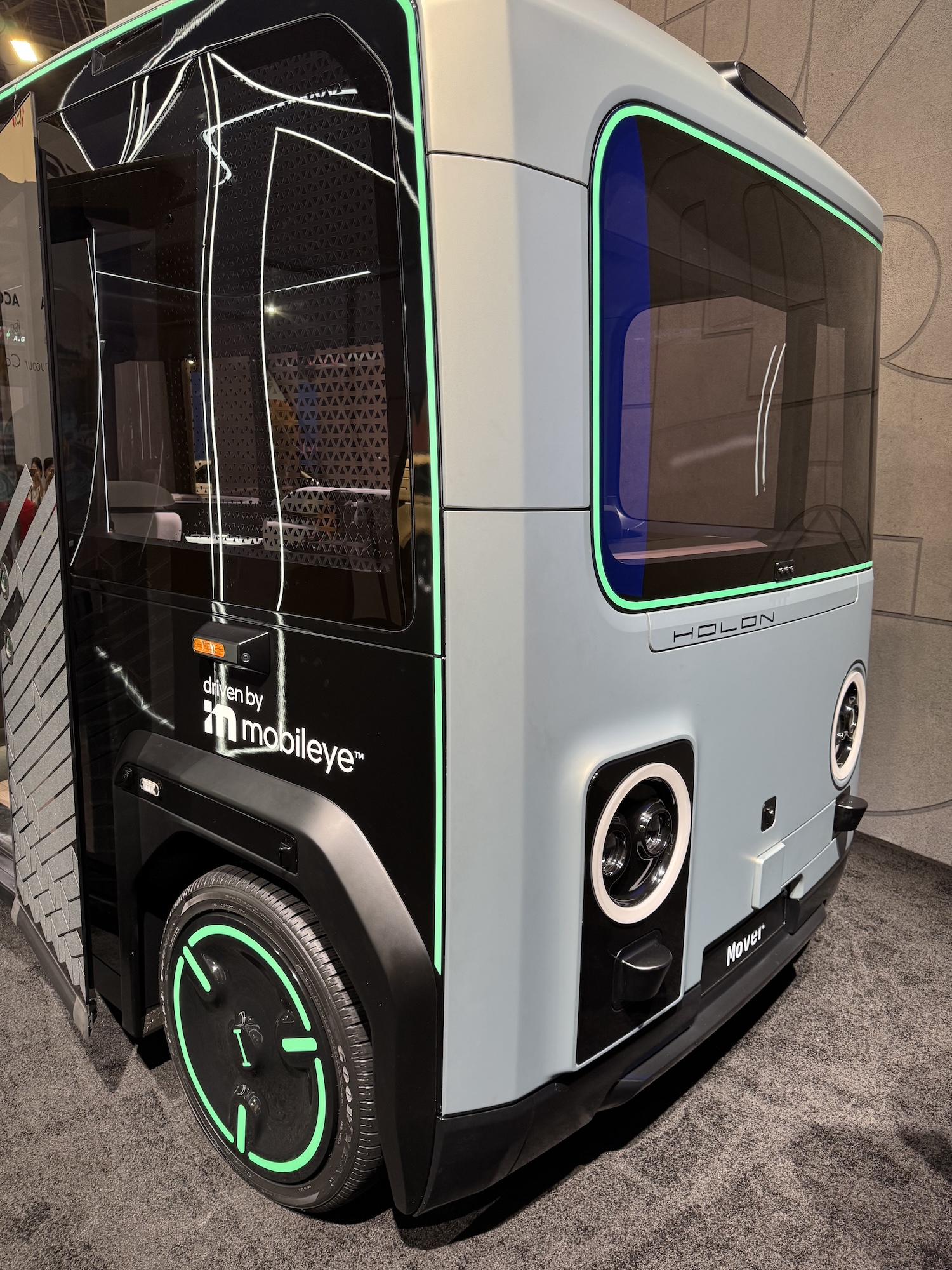 Das Paderborner Unternehmen Holon war auch auf der CES 2025 mit seinem Shuttle vertreten. Die Selbstfahrtechnologie stammt vom Partner Mobileye. Hier sind ein paar Eindrücke.