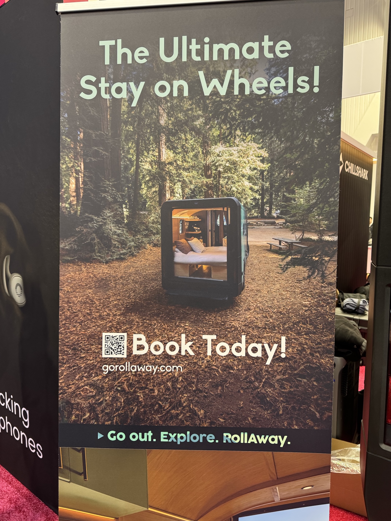 Zum ersten Mal gab es mit der CES 2025 auch einen elektrischen Wohnwagen. RollAway ist ein Reisekonzept, das nicht nur in Form eines elektrischen Wohnmobils mit 432 Kilometer (270 Meilen) Reichweite daherkommt, sondern auch jede Menge weitere Dienstleistungen wie Frühstück inkludiert. Es soll im Prinzip ein Hotel auf Rädern sein.