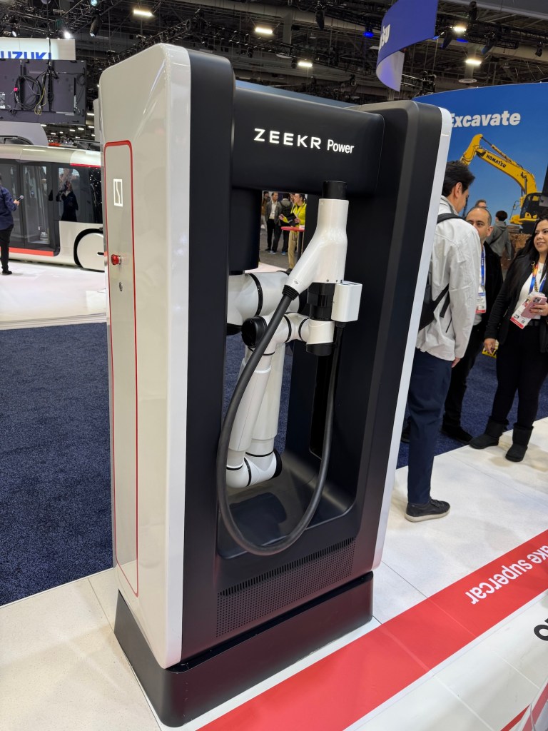 Fast versteckt hat die Geely-Tochter Zeekr inmitten seiner Autos einen Laderoboter versteckt. Dieses ist stationär und kann einen Roboterarm ausfahren, der in die Ladebuchse eines Elektroautos einflanscht und so das Fahrzeug laden kann. Hier ein paar Fotos mit Details: