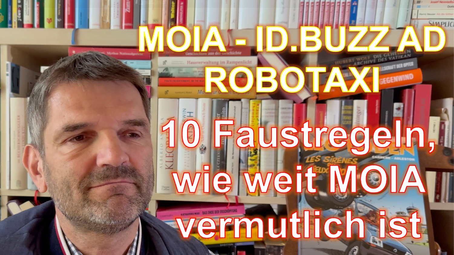 Die VW-Tochter MOIA stellte mit dem ID.Buzz AD sein Robotaxi vor, das ab 2026 produziert und eingesetzt werden soll. Ich stelle mir die Frage, wie weit MOIA wirklich ist und zeige 10 Faustregeln, wie ich selbst abzuschätzen versuche, wie weit ein Robotaxi-Hersteller sein könnte.