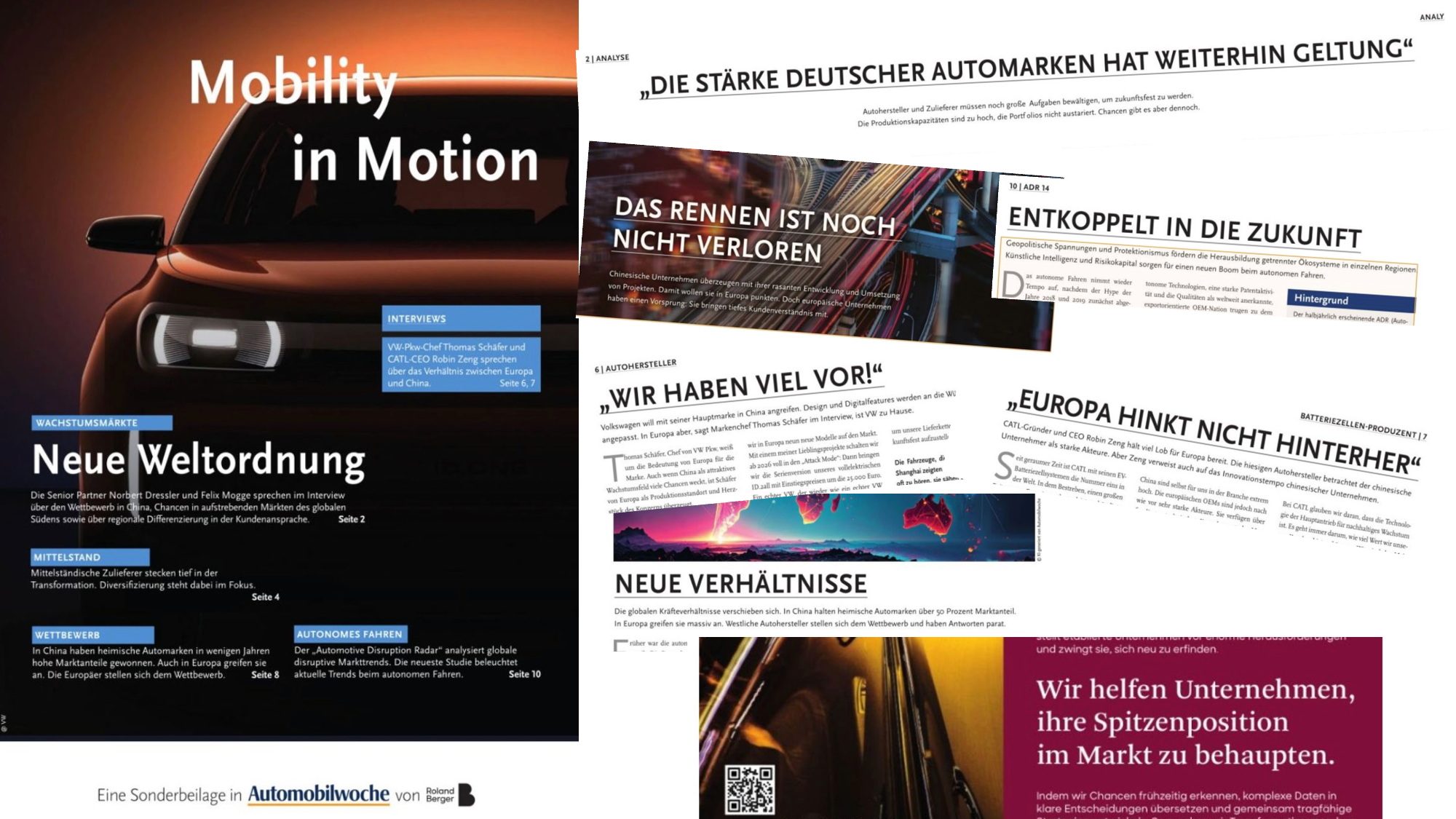 „Die Stärke deutscher Automarken hat weltweit Geltung“ versichert man sich dabei, wie auch dass „Das Rennen ist noch nicht verloren“. Da hat wohl jemand schon Zweifel angemeldet und gemeint, sie wären „Entkoppelt in die Zukunft“? Wirklich? Indem man weiterhin auf den Verbrenner setzt? „Wir haben viel vor!“ soll wohl Mut machen, denn „Europa hinkt nicht hinterher“ ist man sich sicher, genau auch die, dass „Neue Verhältnisse“ herrschen würden. Ja, China macht uns Druck. Zum Glück gibt’s zum Abschluss eine Werbeeinschaltung einer Beratungsfirma, die sich folgendermaßen brüstet: „Wir helfen Unternehmen, ihre Spitzenposition am Markt zu behaupten.“