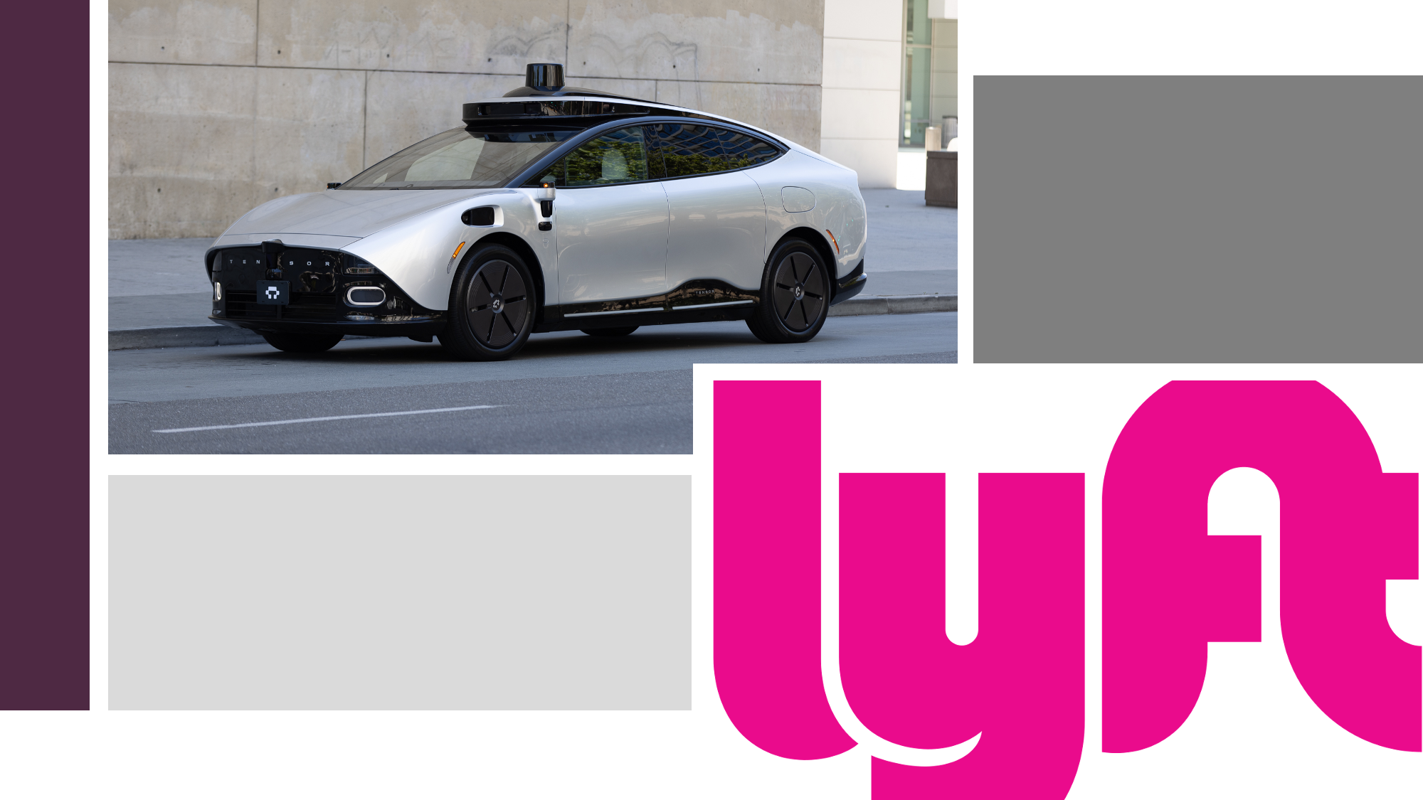 Tensor, der in San José basierte Hersteller von privaten Robocars, plant seine Fahrzeuge fabriksfertig für den Einsatz in Ridesharingdiensten anzubieten. Das Unternehmen kündigte dazu eine strategische Partnerschaft mit dem San Francisco-Rideshare-Unternehmen Lyft an, welches bereits mehrere hundert Tensor-Fahrzeuge bestellt hat.