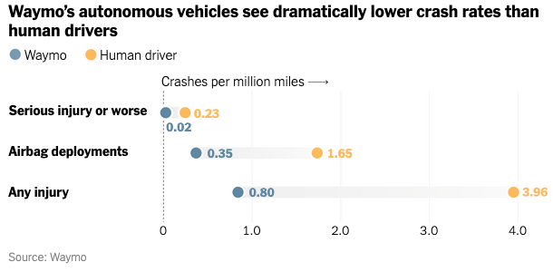 Ich denke, wir werden das bald für alle Städte wissen, in denen Waymos einen signifikanten Anteil übernehmen, und ich vermute stark, dass sich die Annahmen der Studien als falsch herausstellen werden.