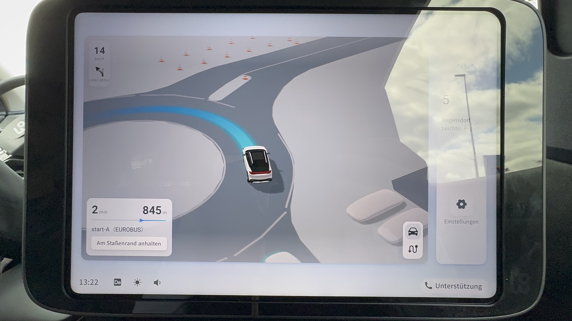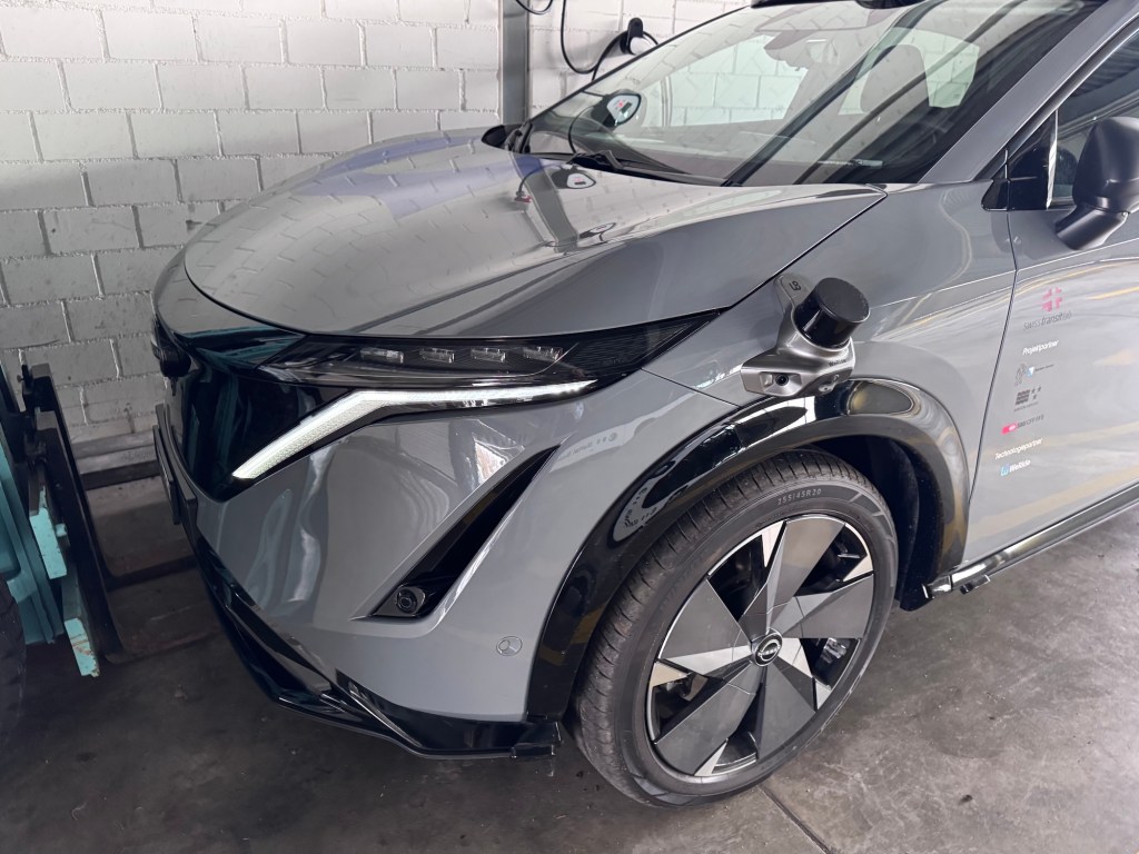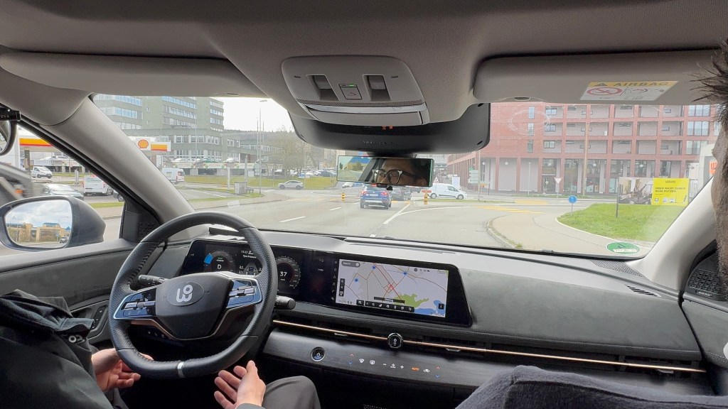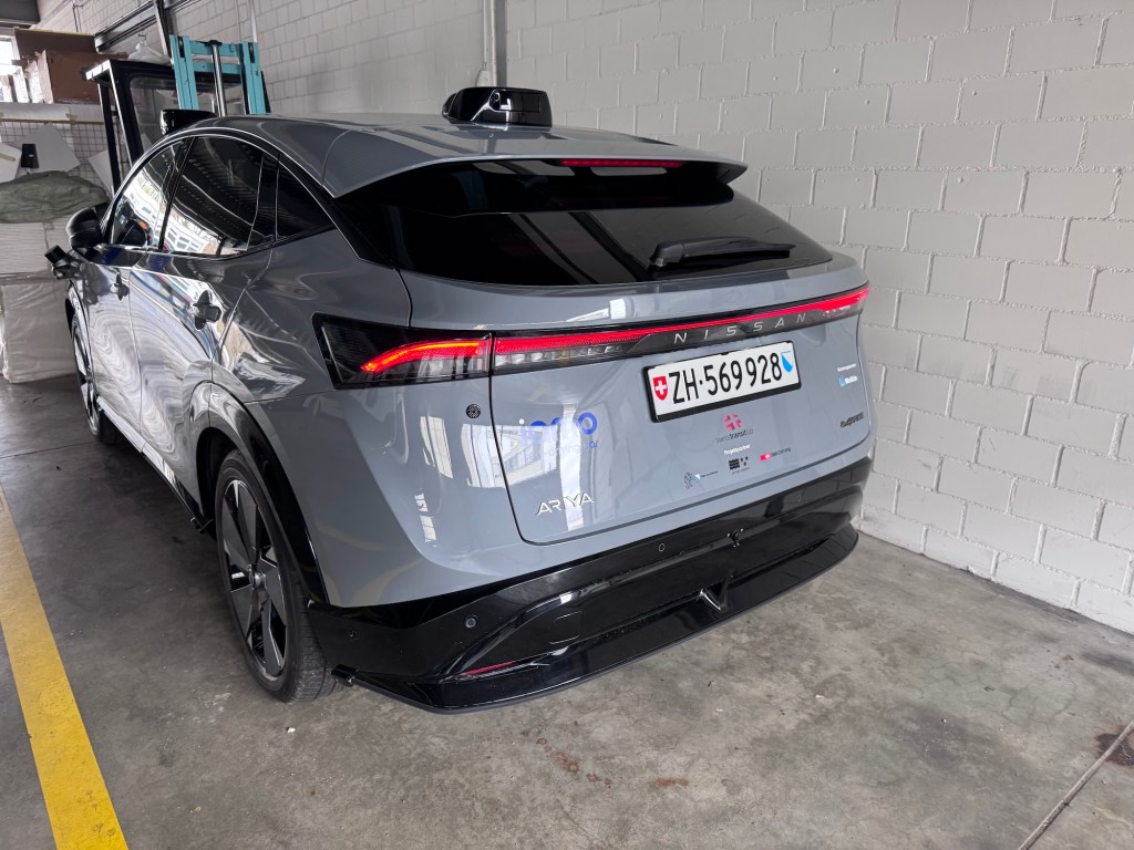 WeRide testet aktuell mit drei Fahrzeugen in der Schweiz, einem von mittlerweile 12 Ländern. Dabei hatte ich die Chance, mit einem Fahrzeug eine Runde im Testgebiet um Regensdorf-Watt, einem Vorort von Zürich, mitzufahren. Auf der Basis des Nissan Ariya sind 11 Kameras und 6 Lidars am Fahrzeug angebracht, sowie im Kofferraum die Recheneinheiten.