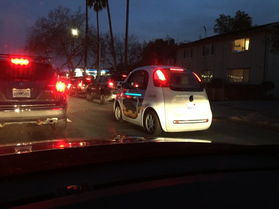 Eindrücke von Googles selbstfahrenden Fahrzeugen im Abendverkehr