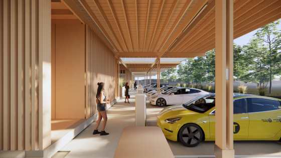 Installation von vorfabrizierten Tesla Supercharger-Stationen