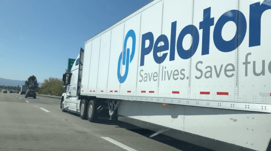 Dieser Peloton Technology Platooning LKW wurde fern von seinerr Herde auf dem Highway 237 am 7. Oktober 2019 um etwa … Mehr