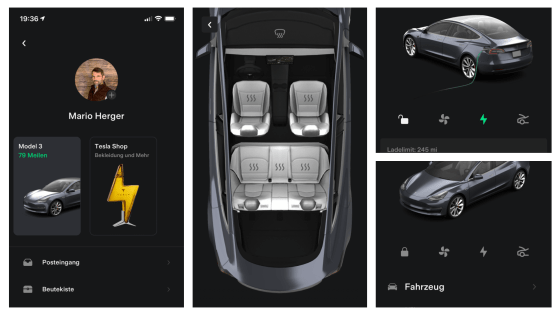 Tesla App mit neuen Funktionen